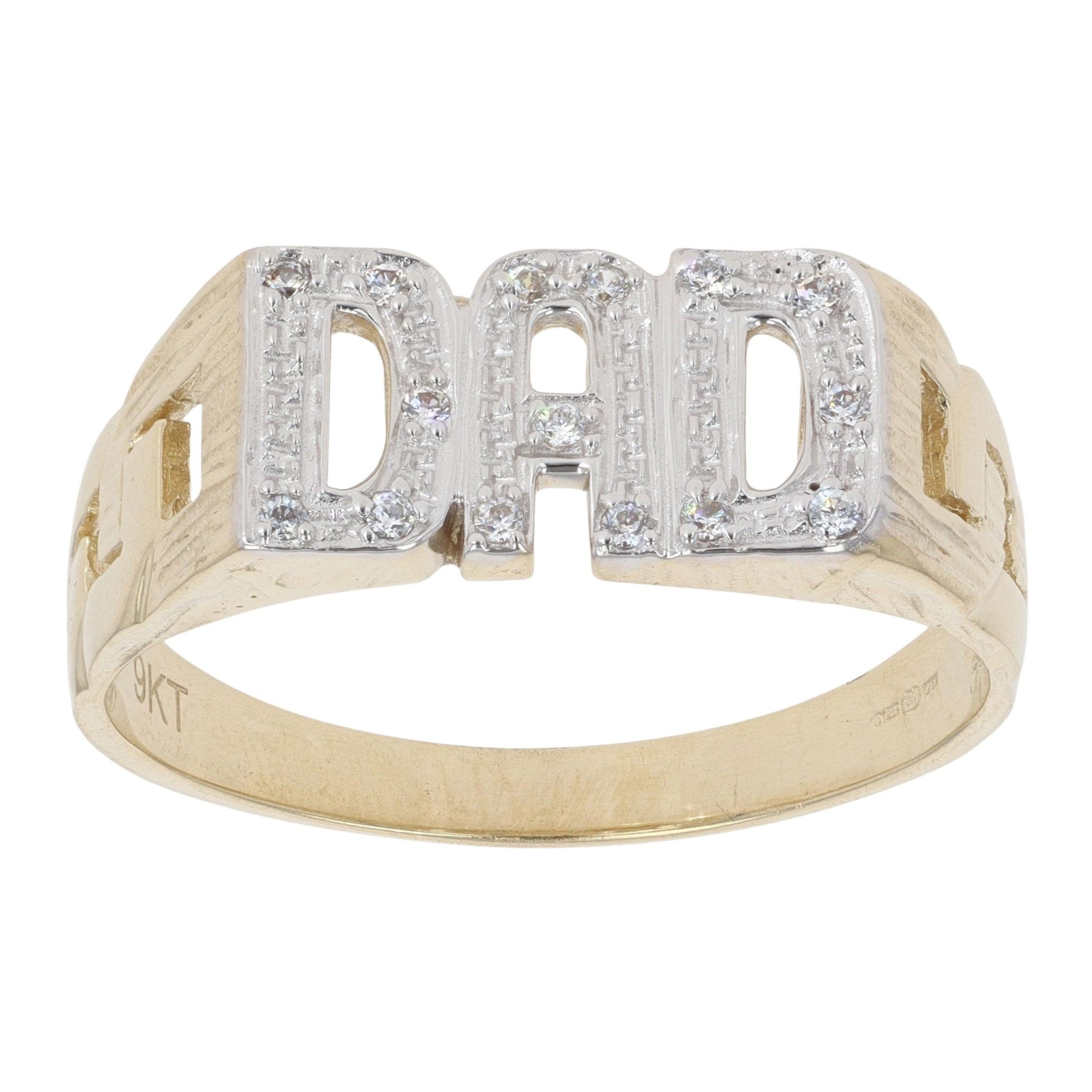 9ct Yellow Gold Cubic Zirconia 'DAD' Ring
