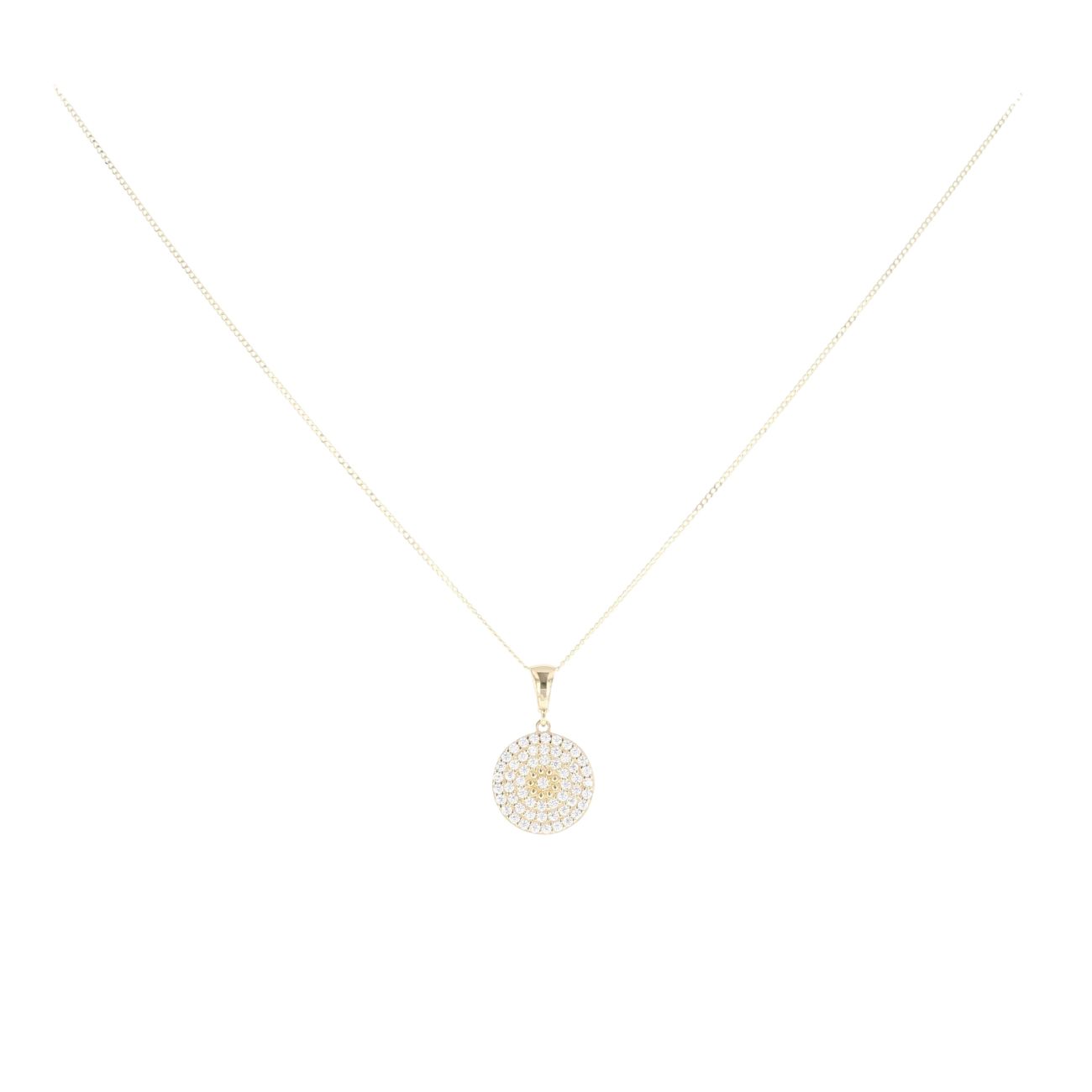 9ct Yellow Gold Cubic Zirconia Disc Pendant And Chain 18"