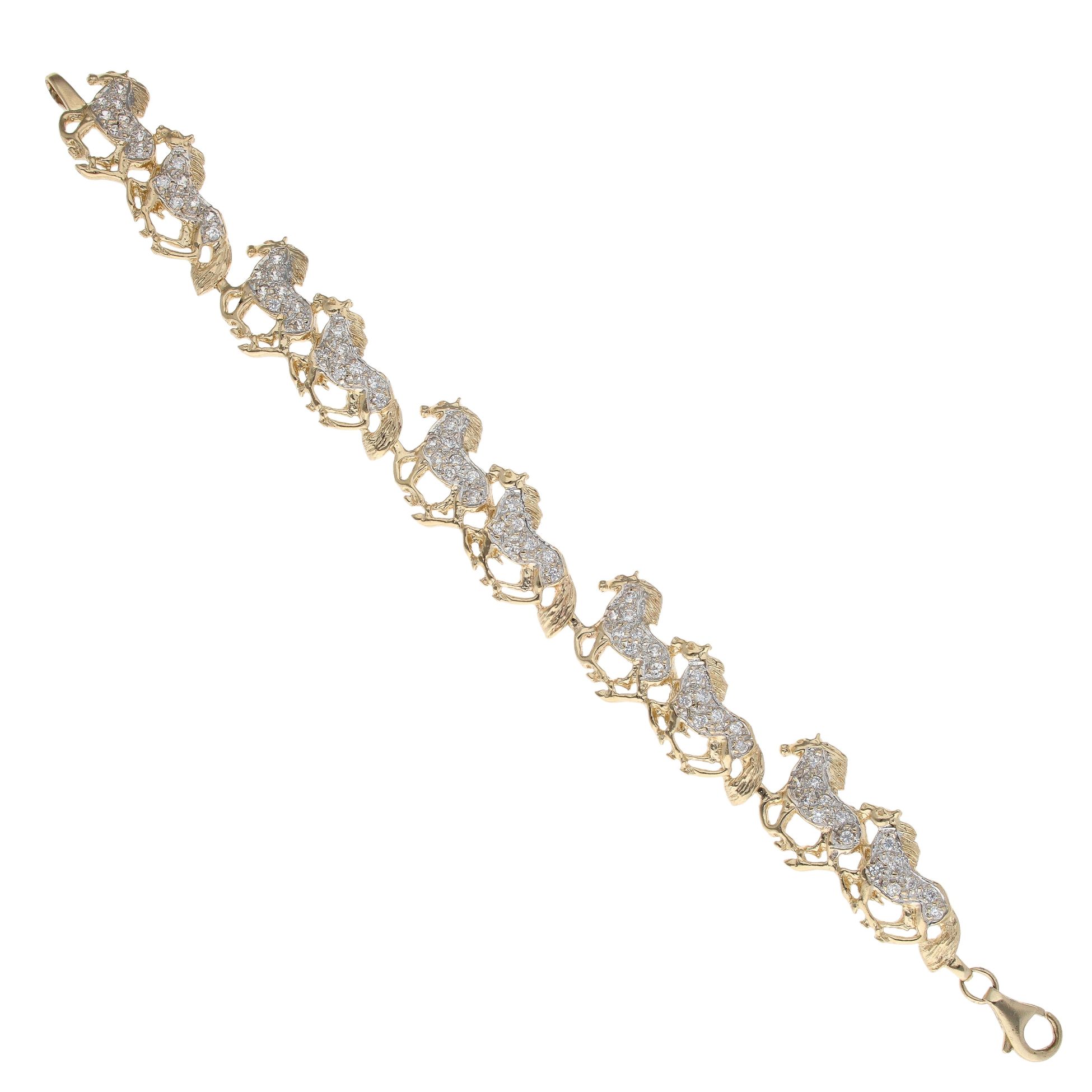 9ct Yellow Gold Cubic Zirconia Horse Bracelet 7.5"