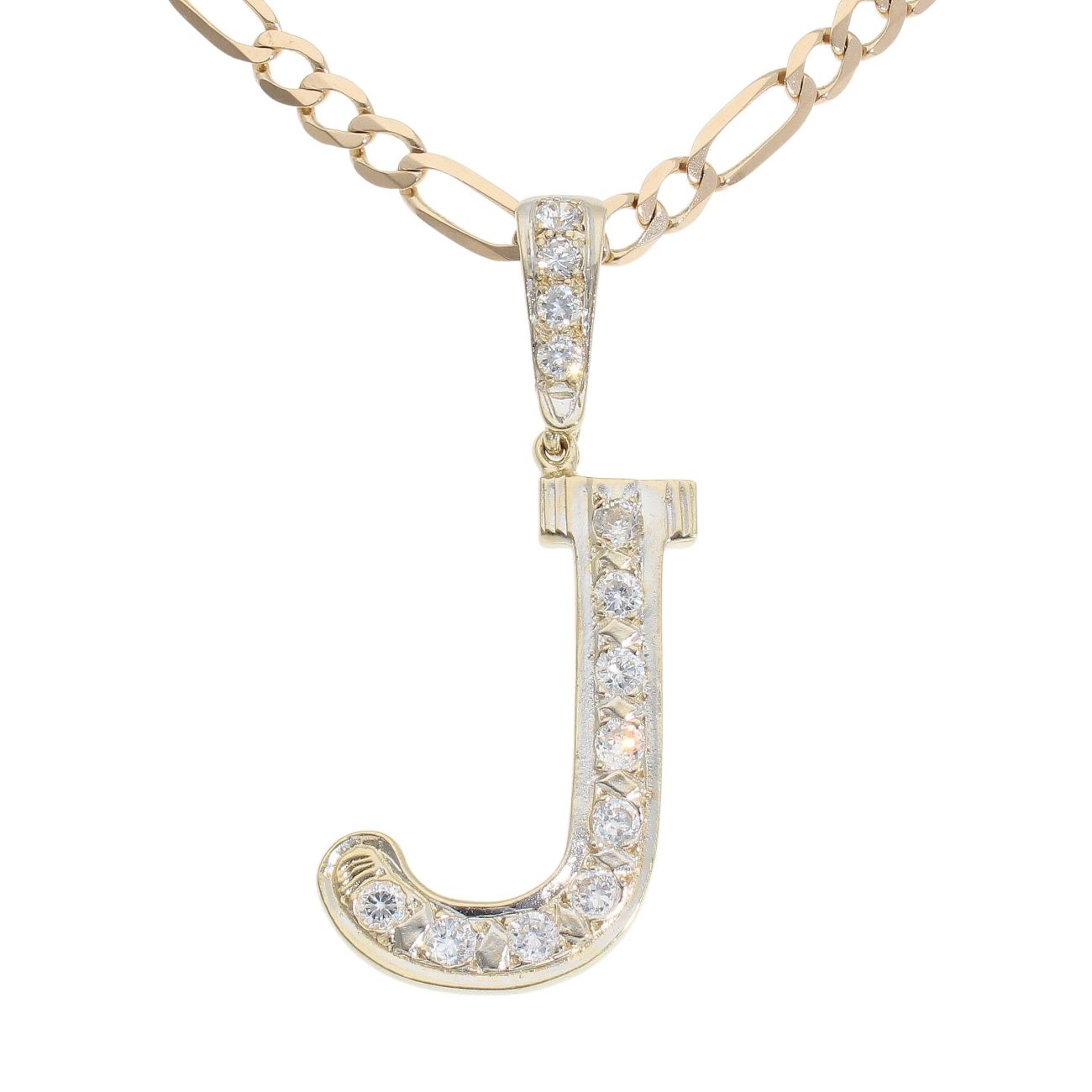 9ct Yellow Gold Cubic Zirconia J Pendant and Chain 24"
