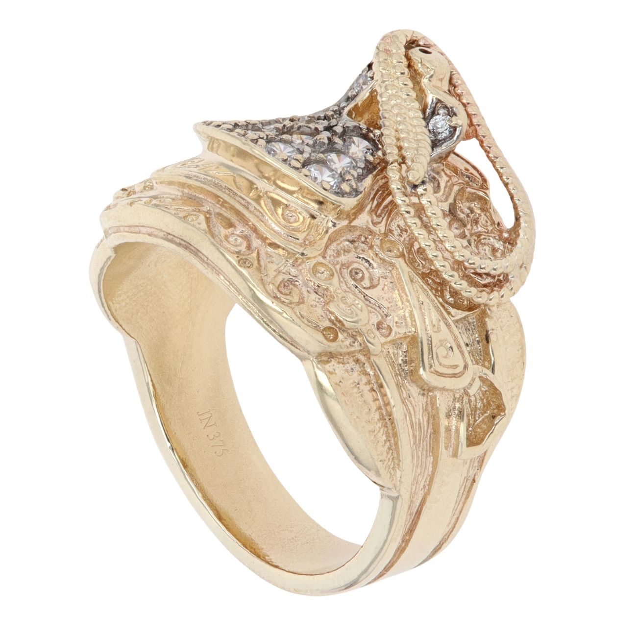 9ct Yellow Gold Cubic Zirconia Patterned Saddle Ring