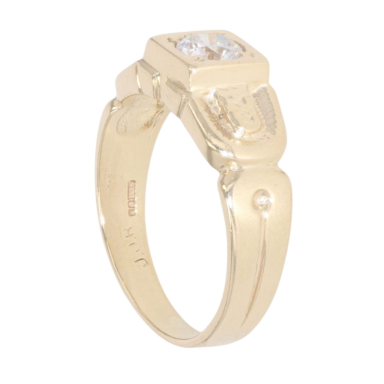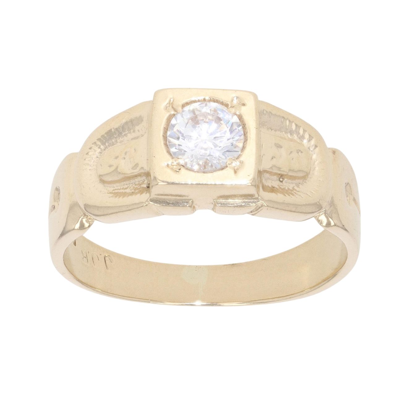 9ct Yellow Gold Cubic Zirconia Patterned Signet Ring
