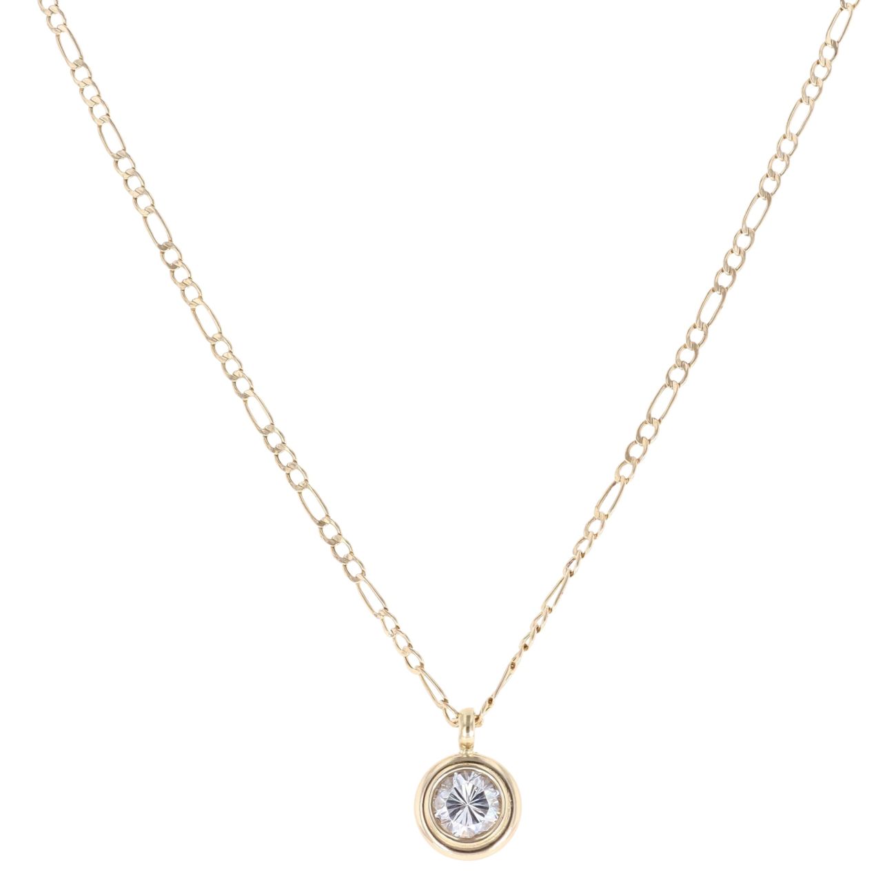 9ct Yellow Gold Cubic Zirconia Single Stone Pendant and Chain 20"