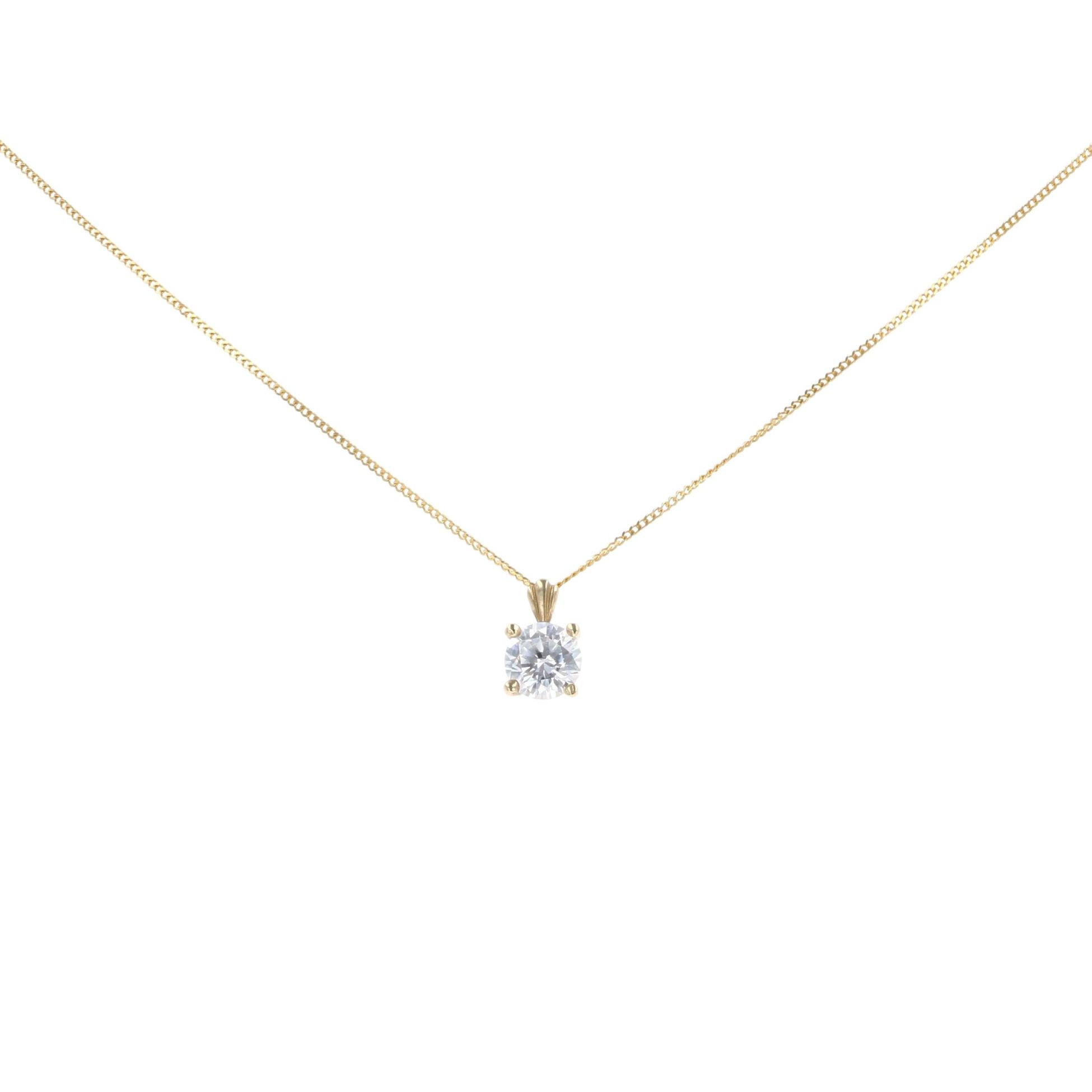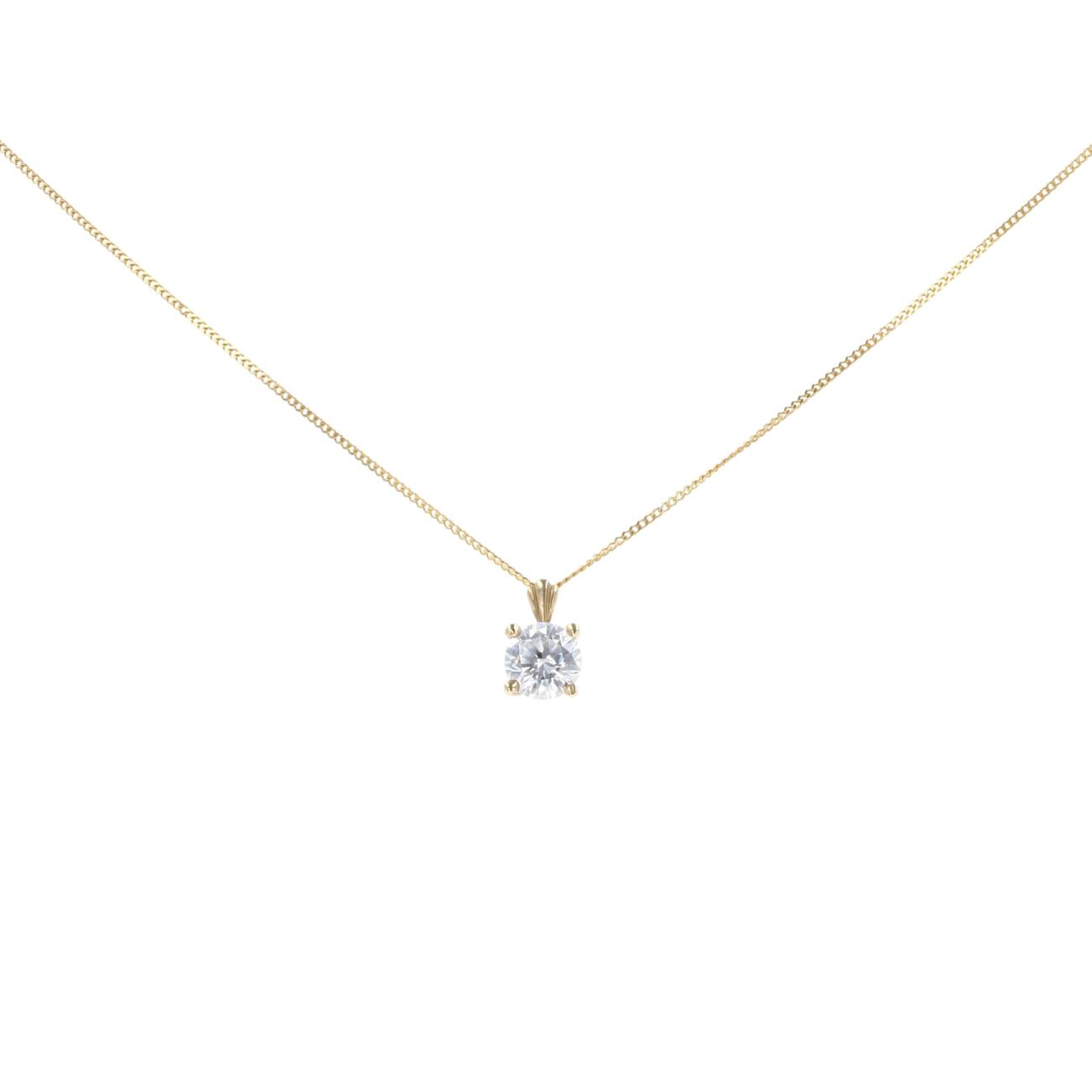 9ct Yellow Gold Cubic Zirconia Solitaire Pendant & Chain 18"