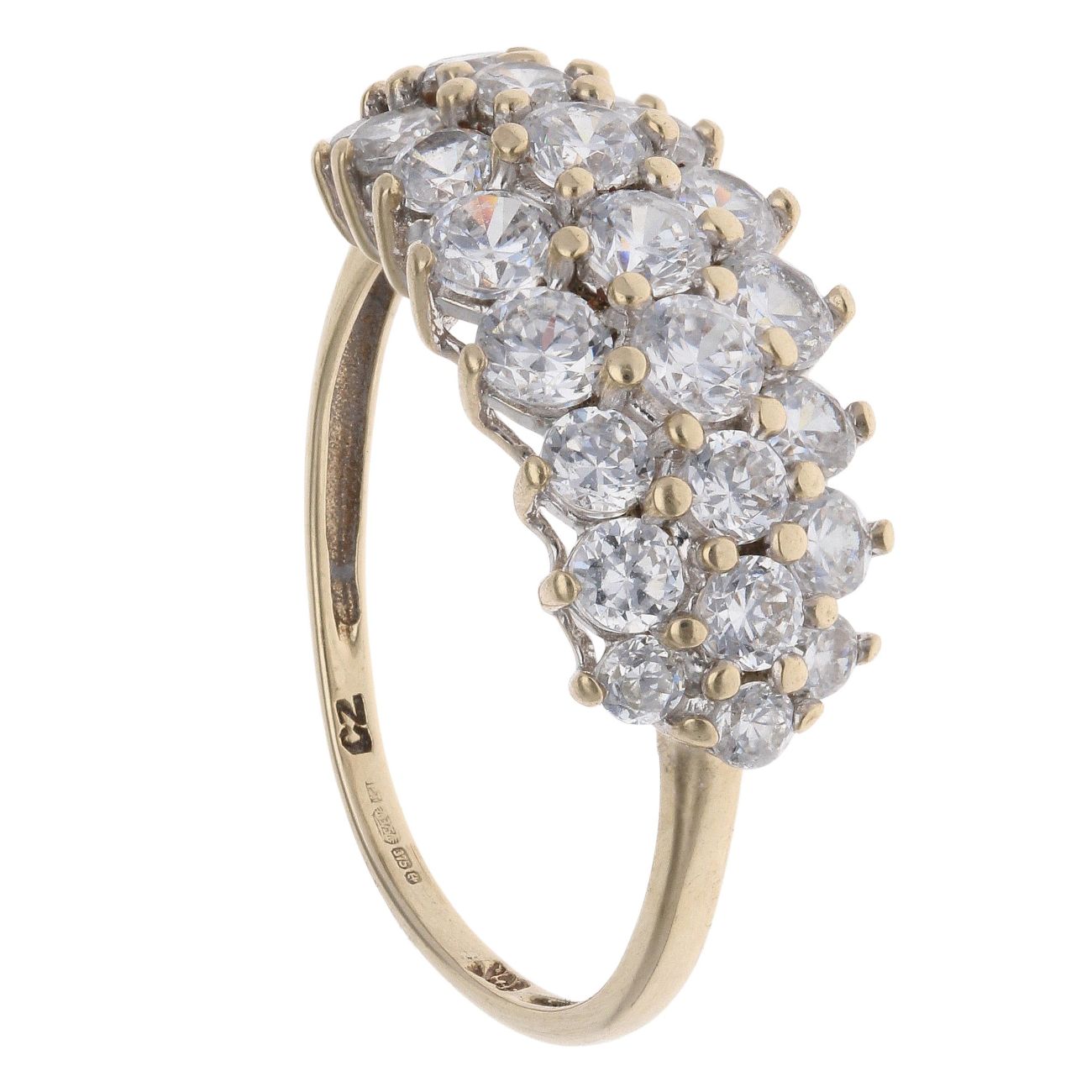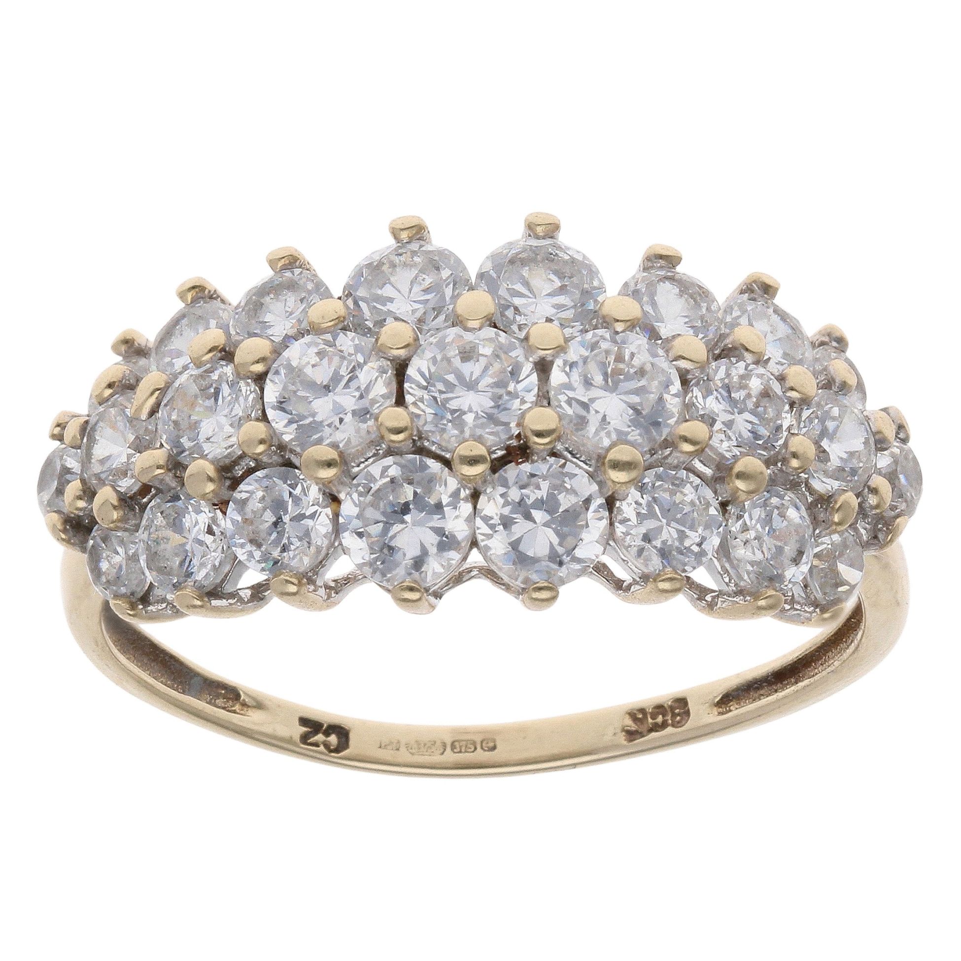 9ct Yellow Gold Cubic Zirconia Three Row Ring