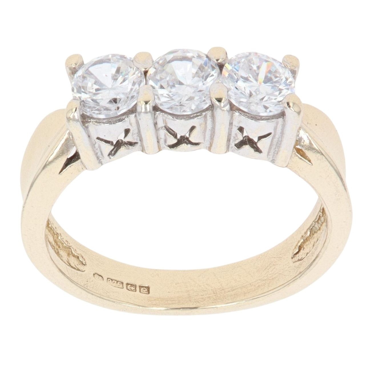 9ct Yellow Gold Cubic Zirconia Three Stone Ring