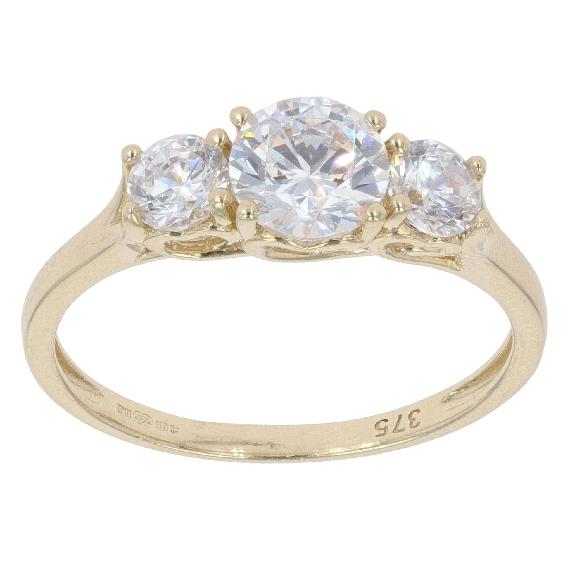 9ct Yellow Gold Cubic Zirconia Three Stone Ring