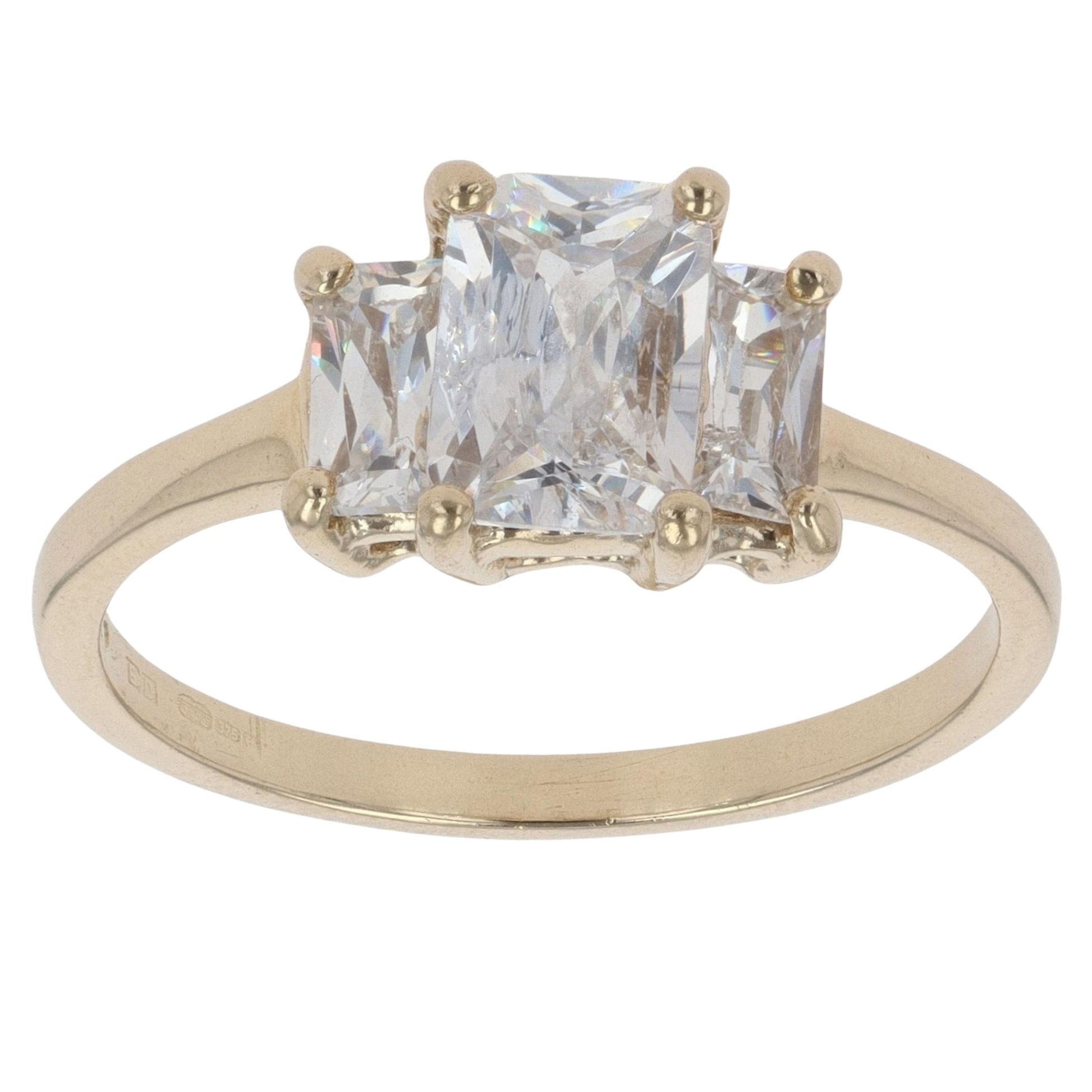 9ct Yellow Gold Cubic Zirconia Three Stone Ring