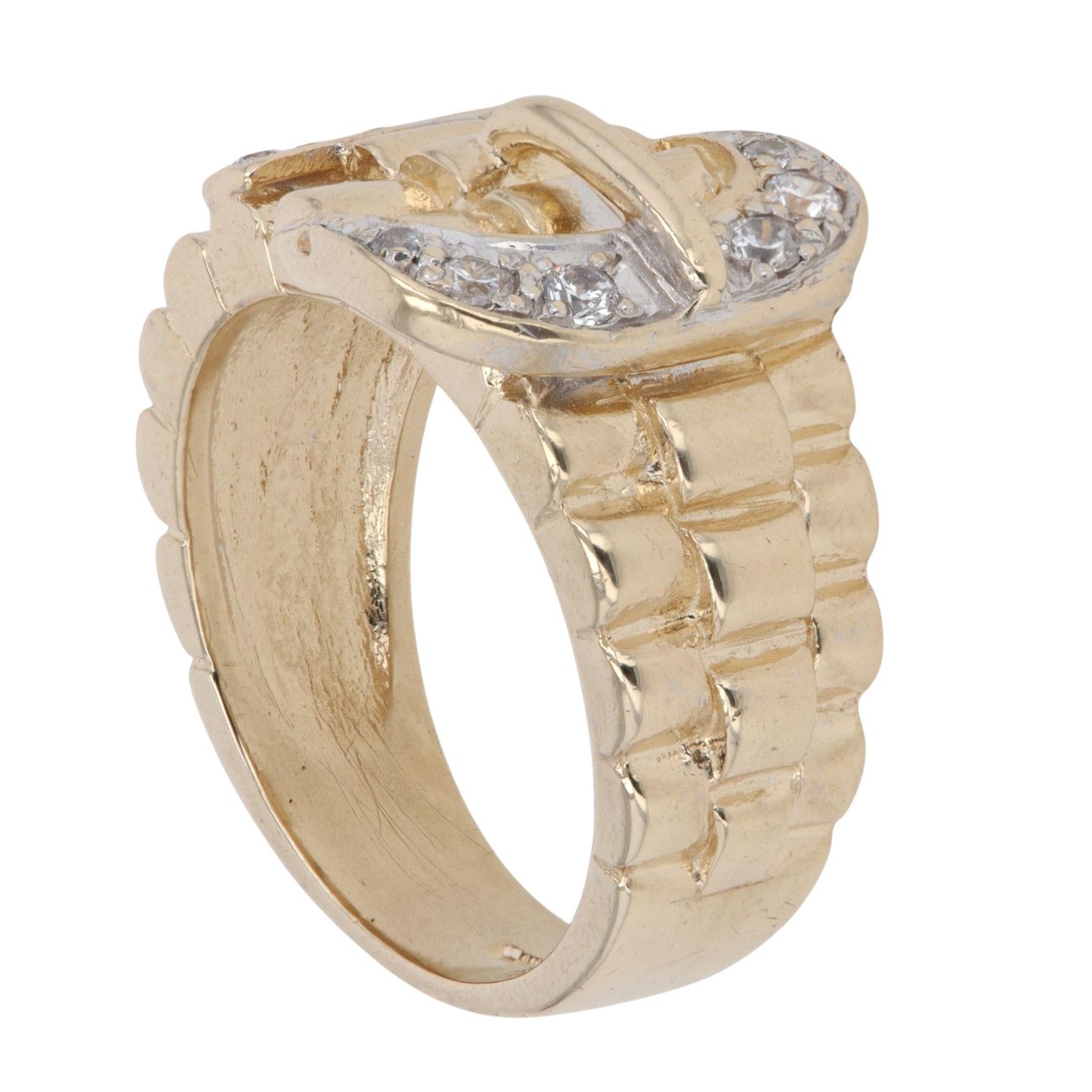 9ct Yellow Gold Cubic Zirconia Watch Strap Patterned Buckle Ring