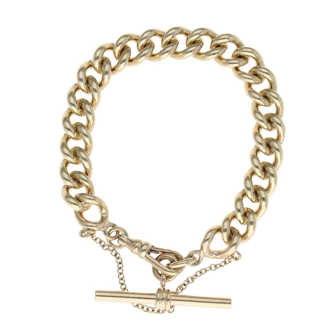 9ct Yellow Gold Curb T-Bar Bracelet 7"