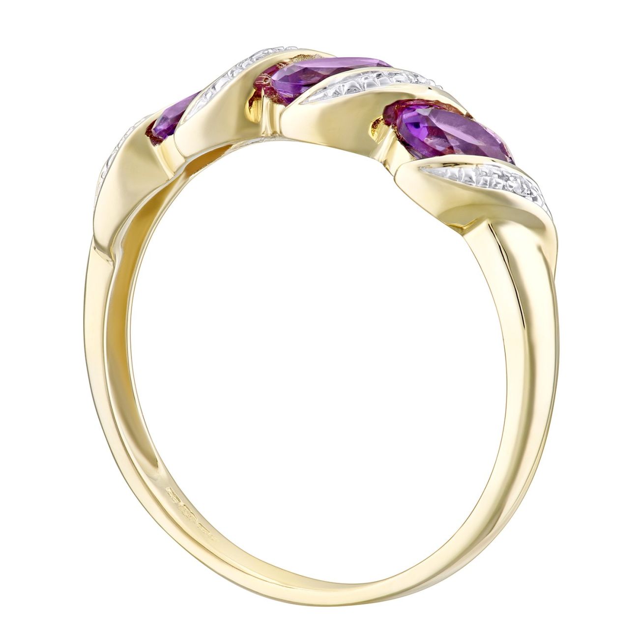 9ct Yellow Gold Diamond and Amethyst Dress Ring