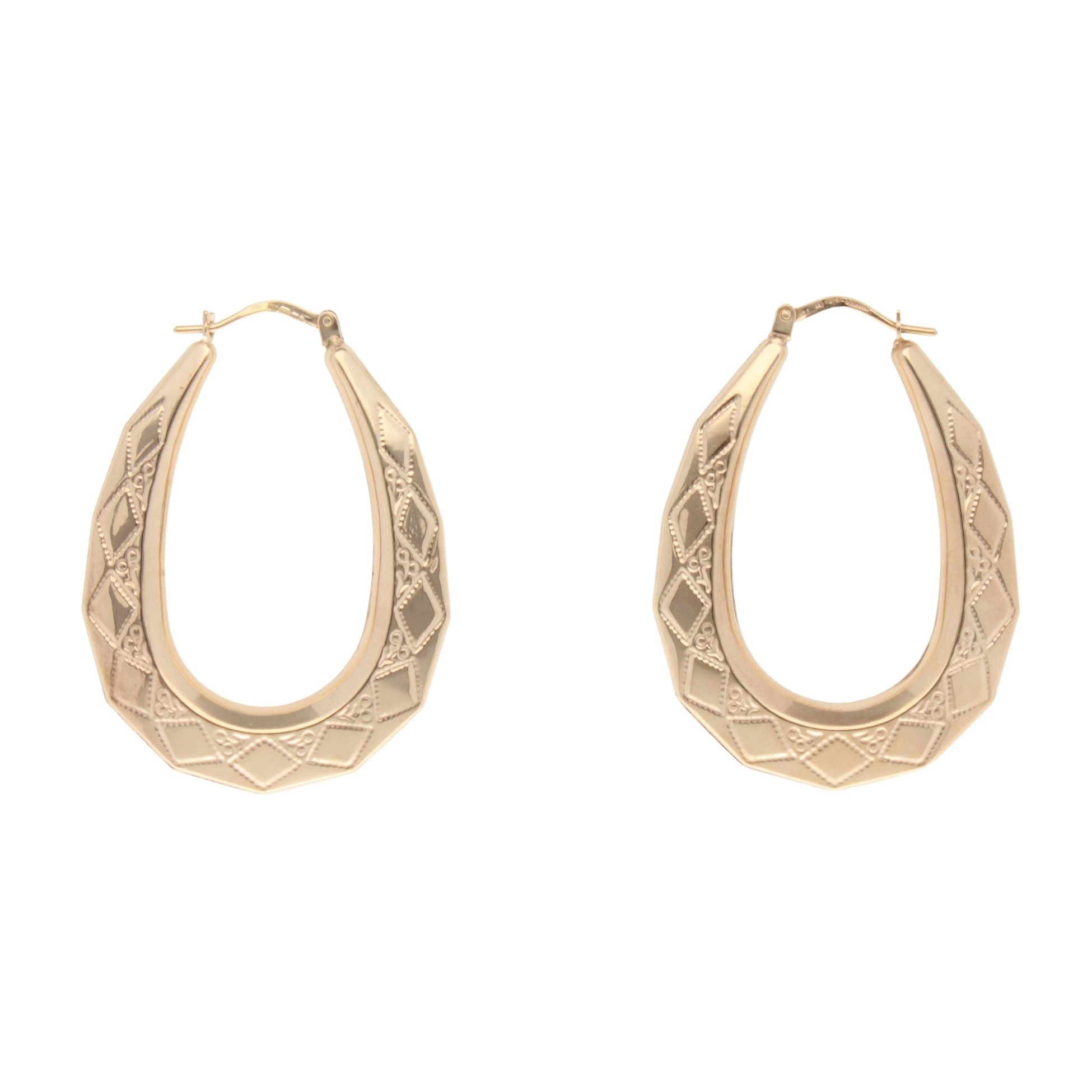 9ct Yellow Gold Diamond Cut Creole Earring