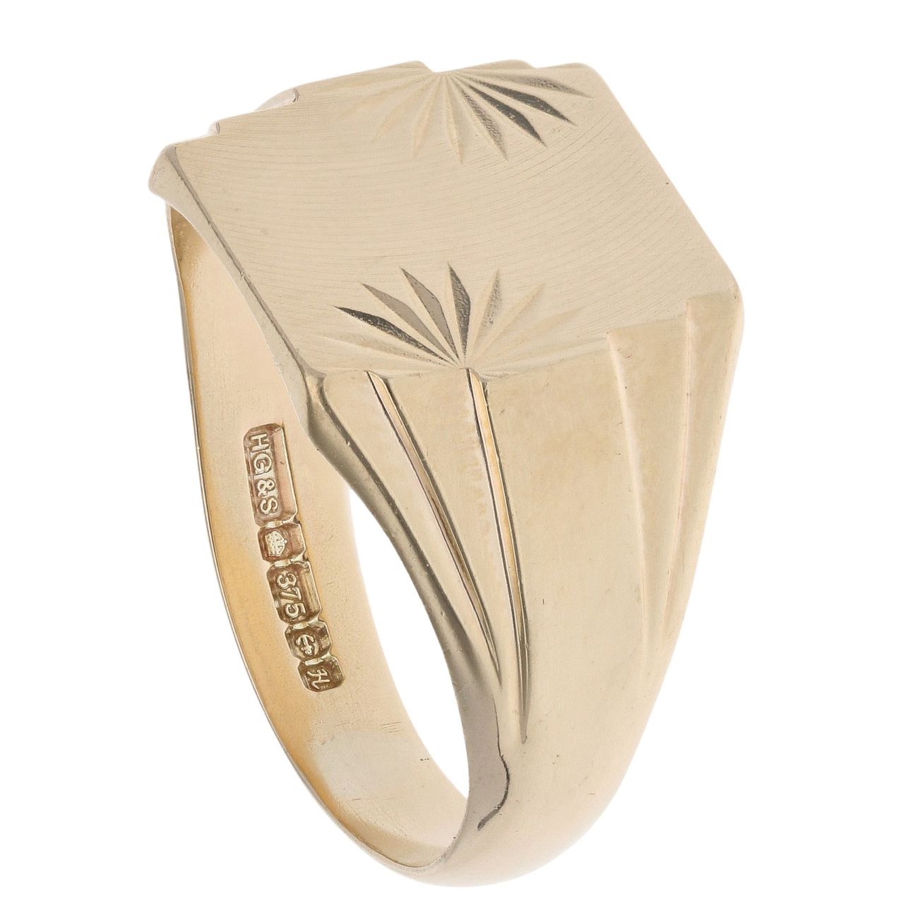 9ct Yellow Gold Diamond Cut Square Signet Ring