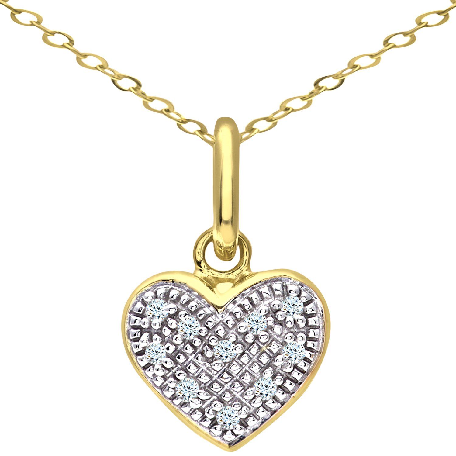 9ct Yellow Gold Diamond Heart Pendant Necklace