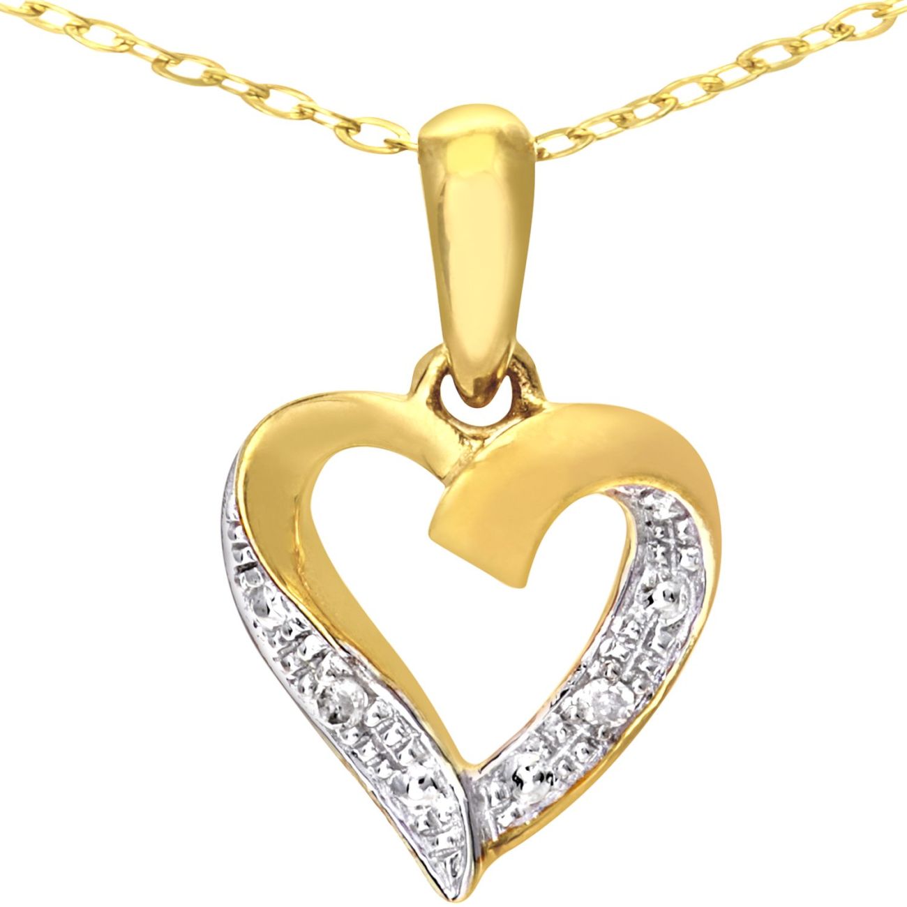 9ct Yellow Gold Diamond Heart Pendant Necklace