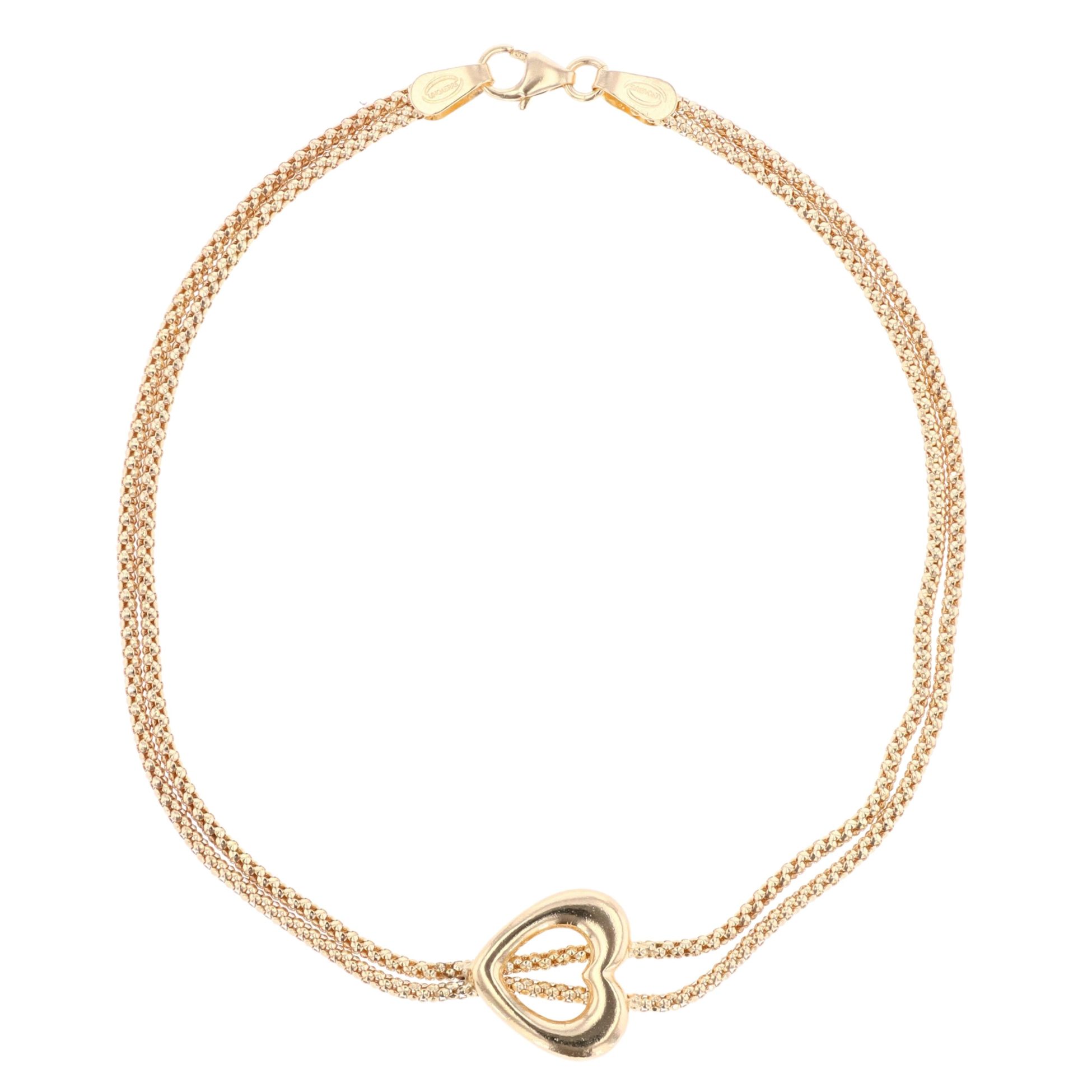 9ct Yellow Gold Duo Heart Bracelet 7.5"