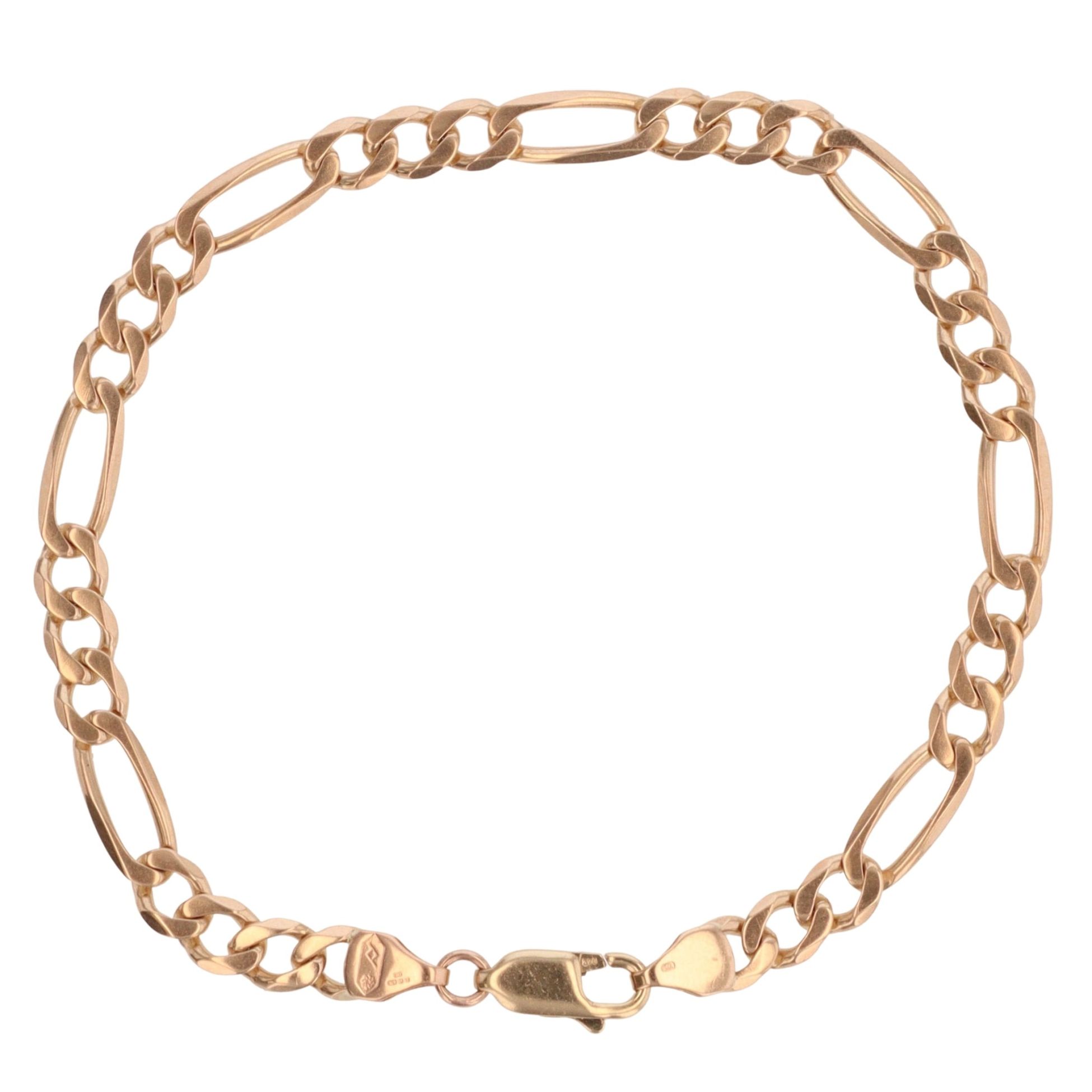 9ct Yellow Gold Figaro Bracelet 7.5