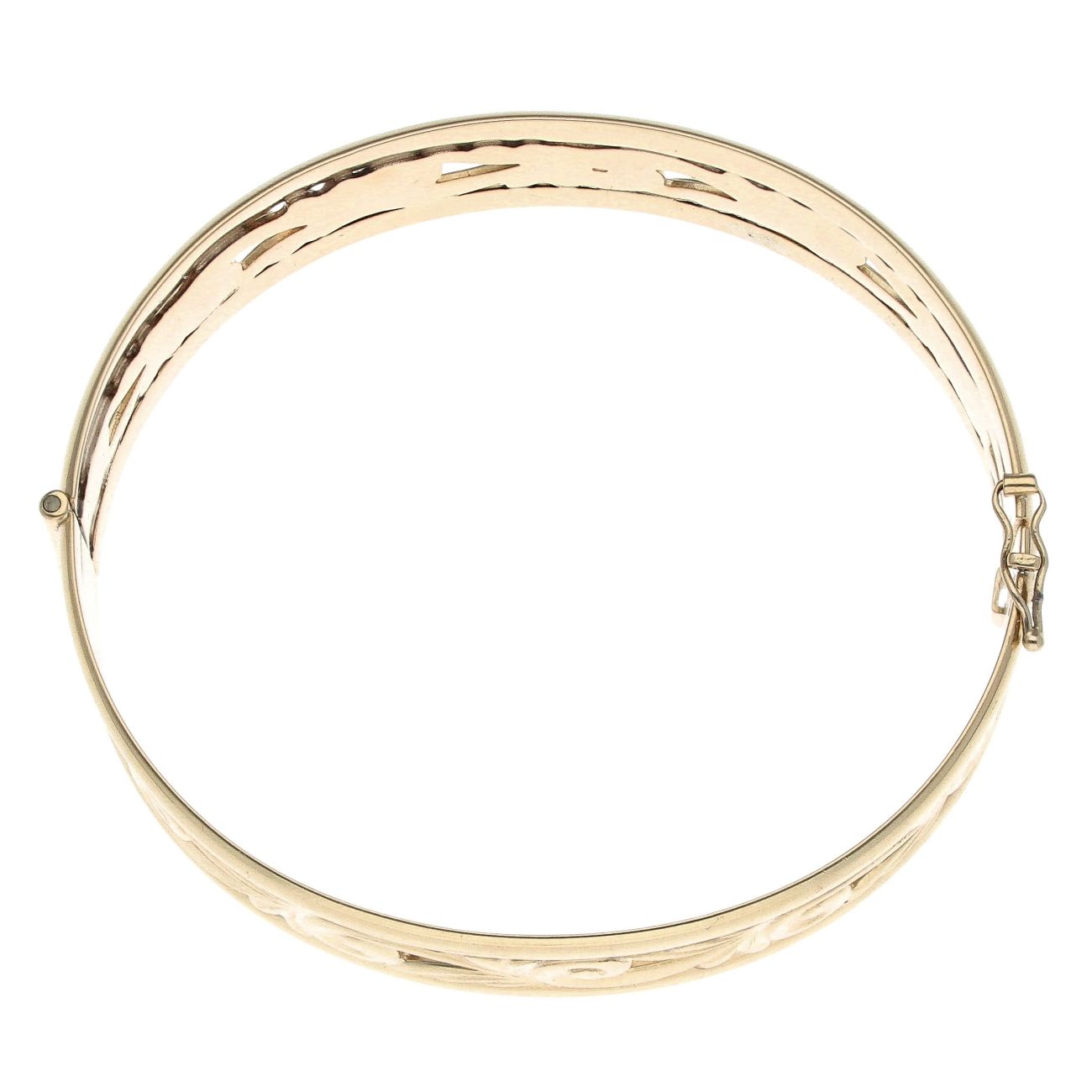 9ct Yellow Gold Filigree Patterned Hinged Bangle