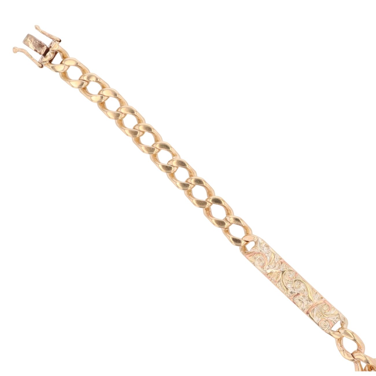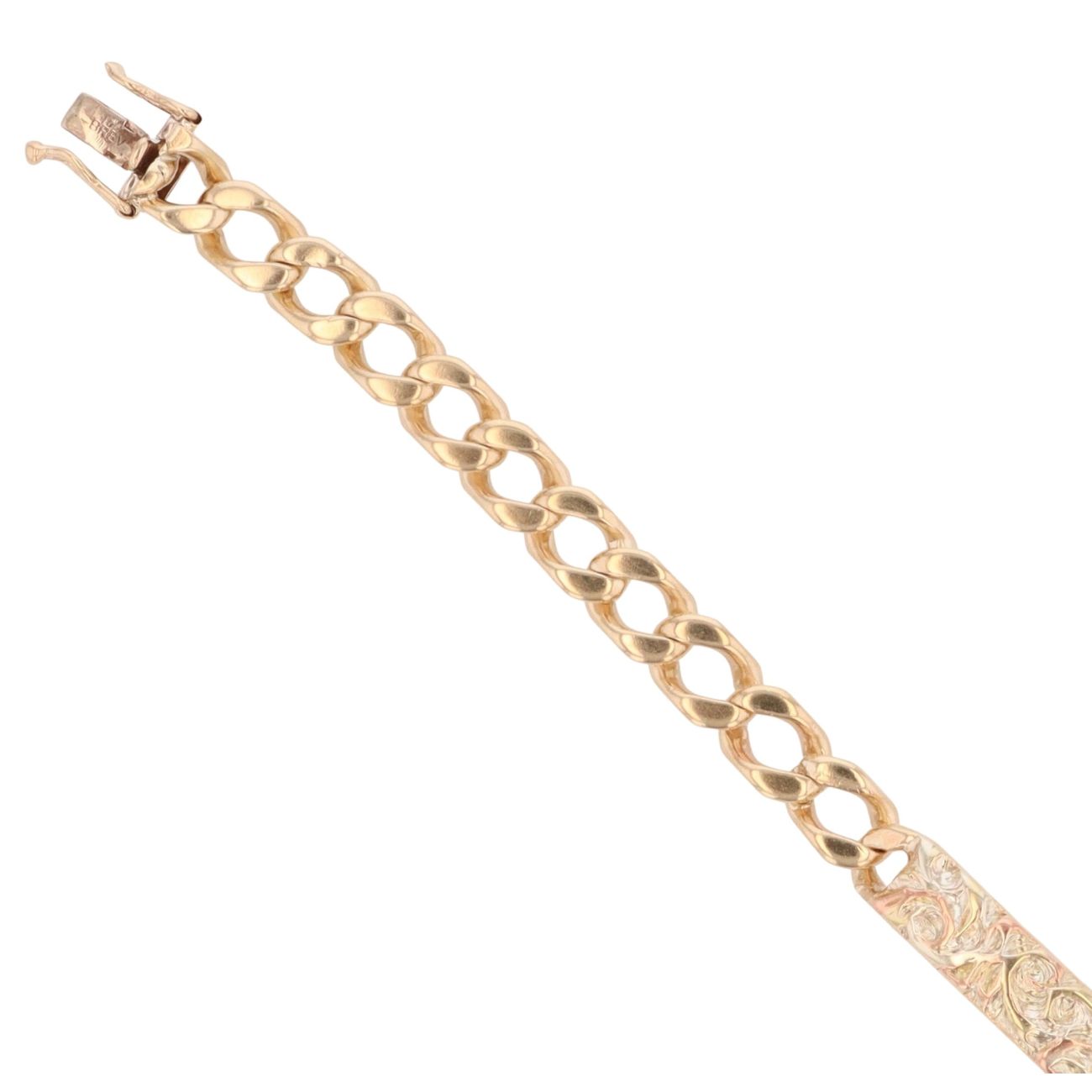 9ct Yellow Gold Filigree Patterned ID Curb Bracelet 8"