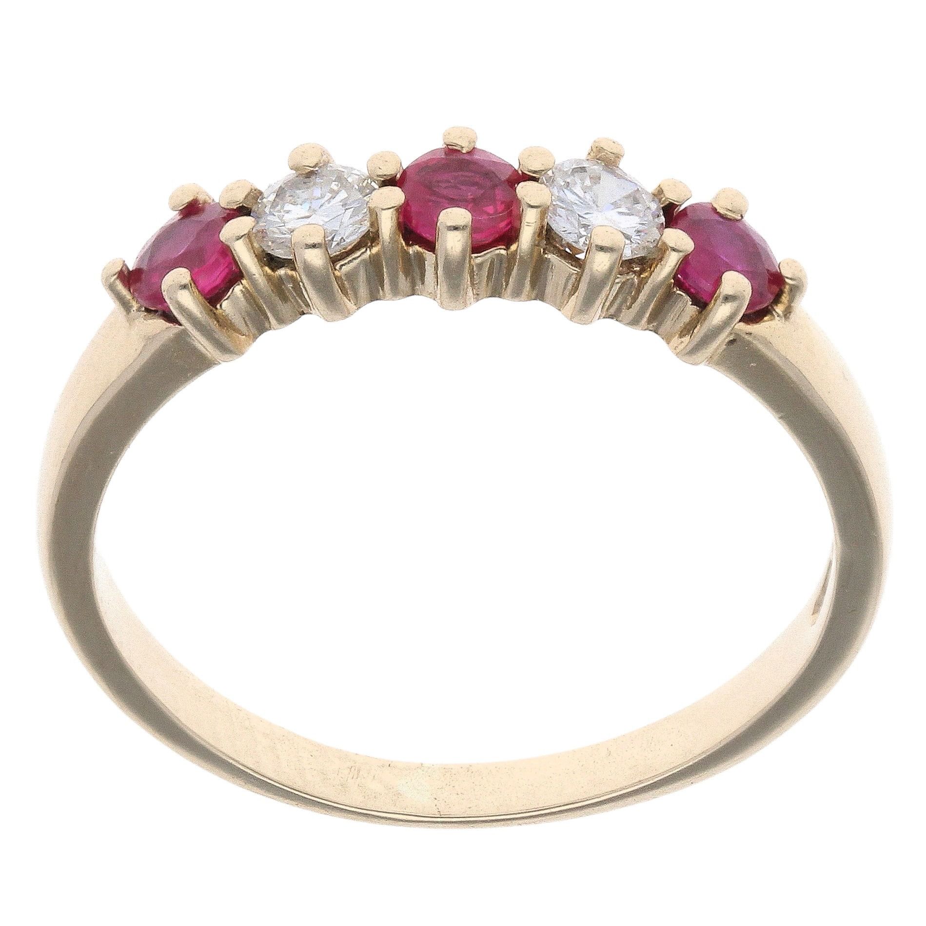 9ct Yellow Gold Five Stone 0.20ct Diamond and Ruby Ring
