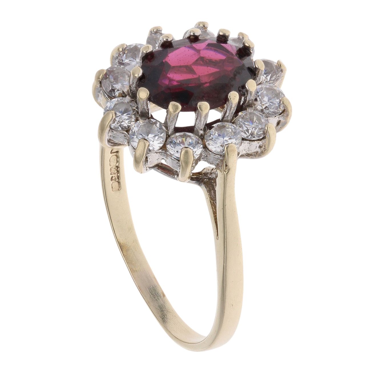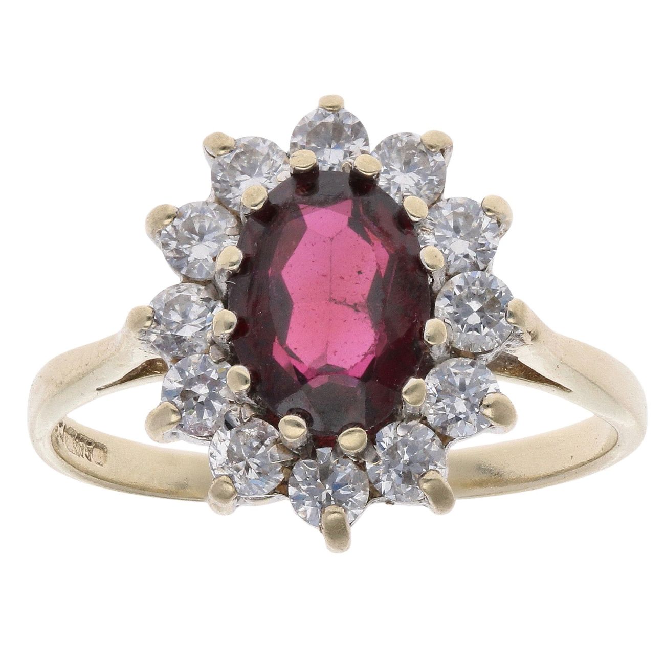 9ct Yellow Gold Garnet And Cubic Zirconia Cluster Ring