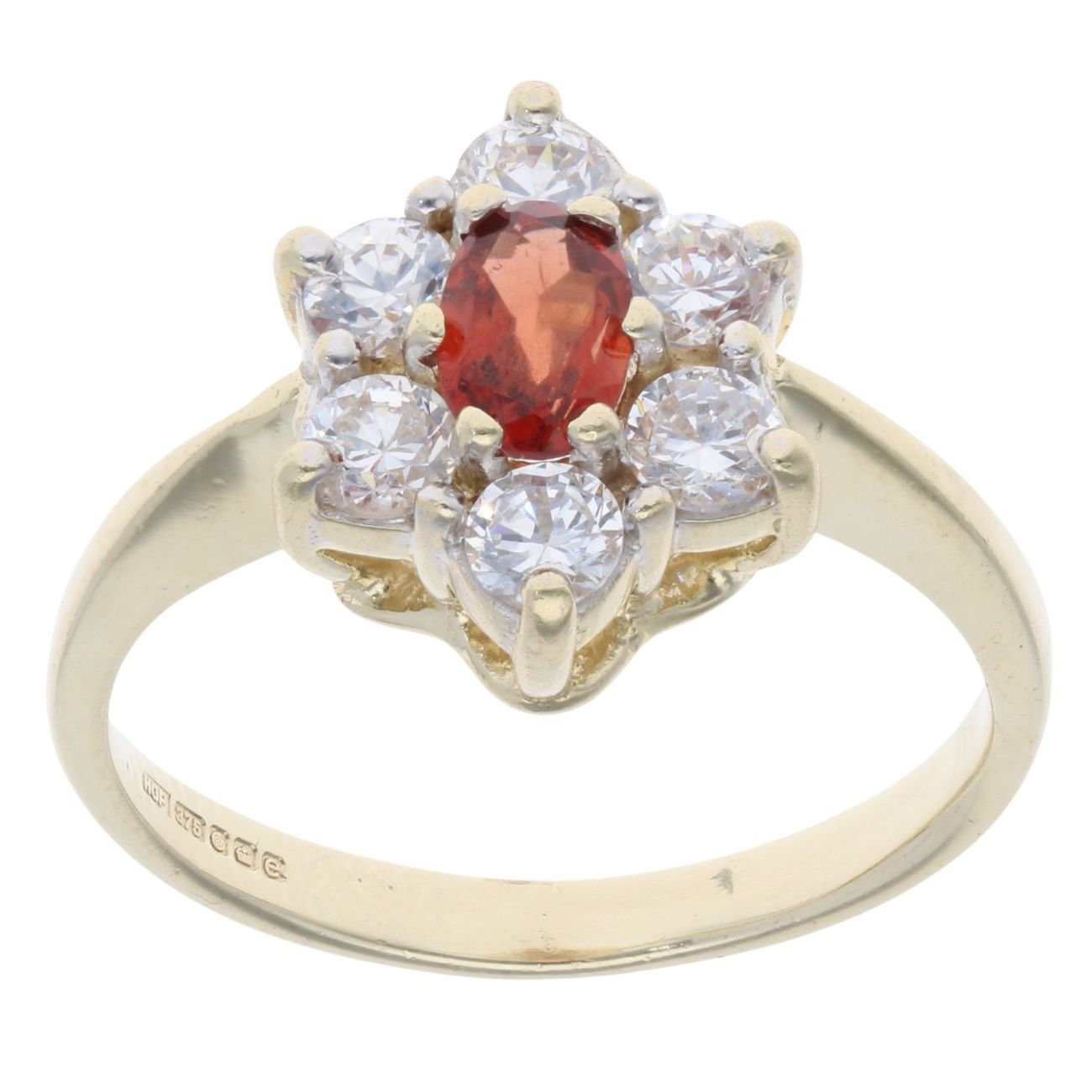 9ct Yellow Gold Garnet And Cubic Zirconia Cluster Ring
