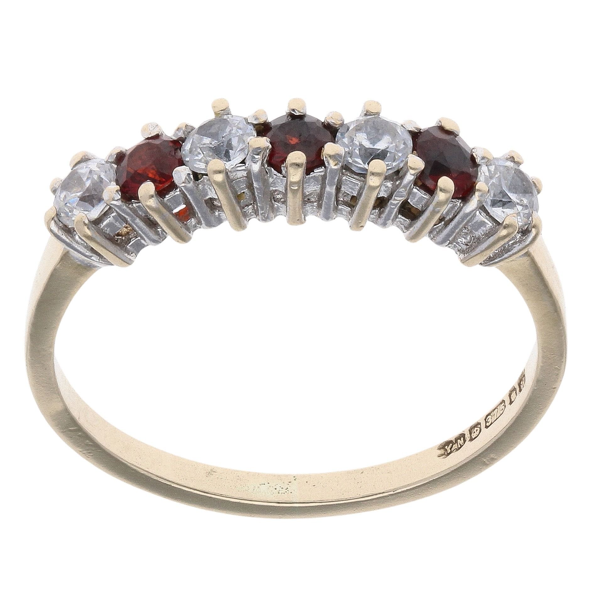 9ct Yellow Gold Garnet And Cubic Zirconia Half Eternity Ring
