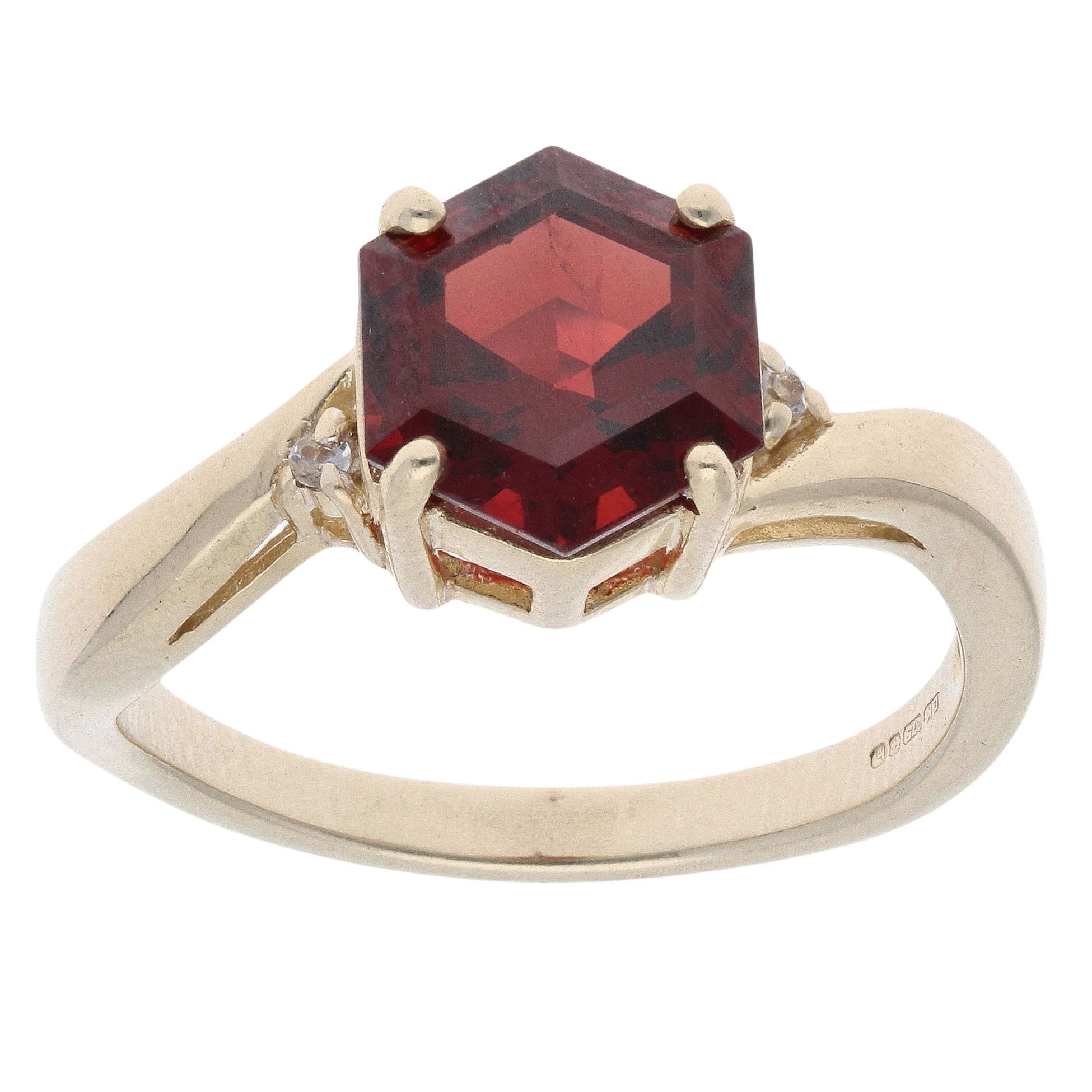 9ct Yellow Gold Garnet And Cubic Zirconia Ring