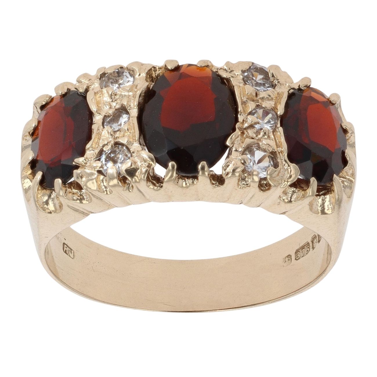 9ct Yellow Gold Garnet and Cubic Zirconia Signet Ring