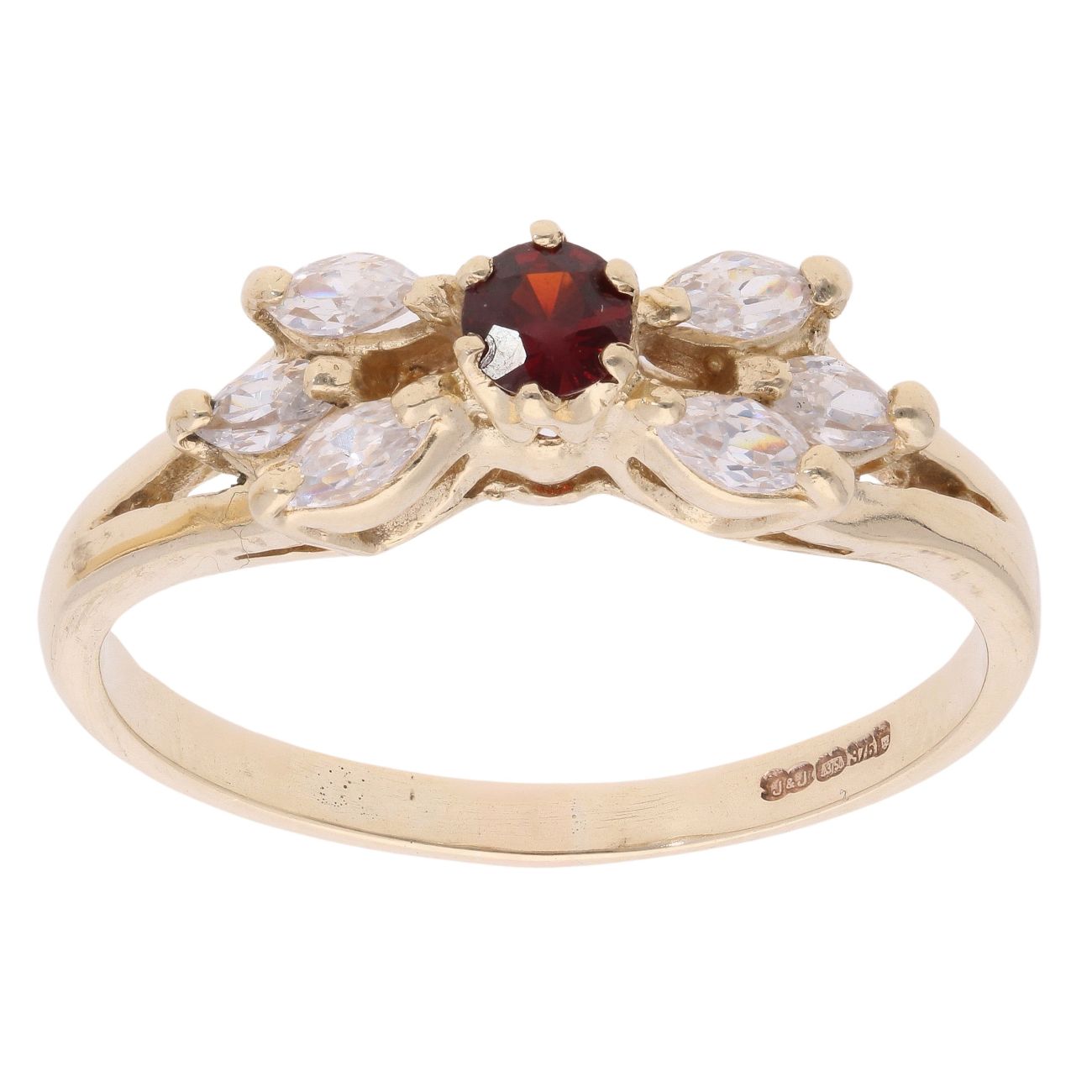 9ct Yellow Gold Garnet And Cubic Zirconia Stone Set Ring