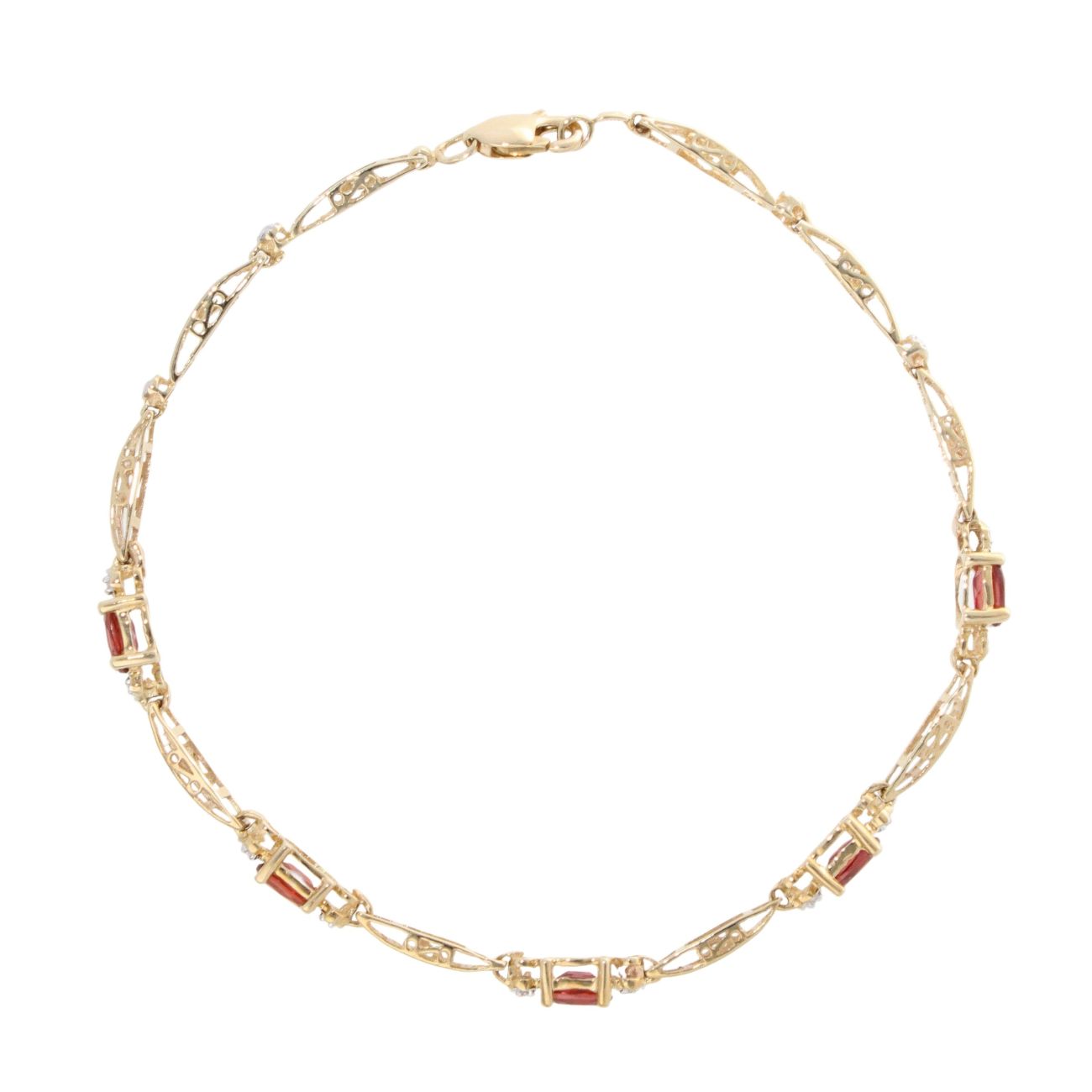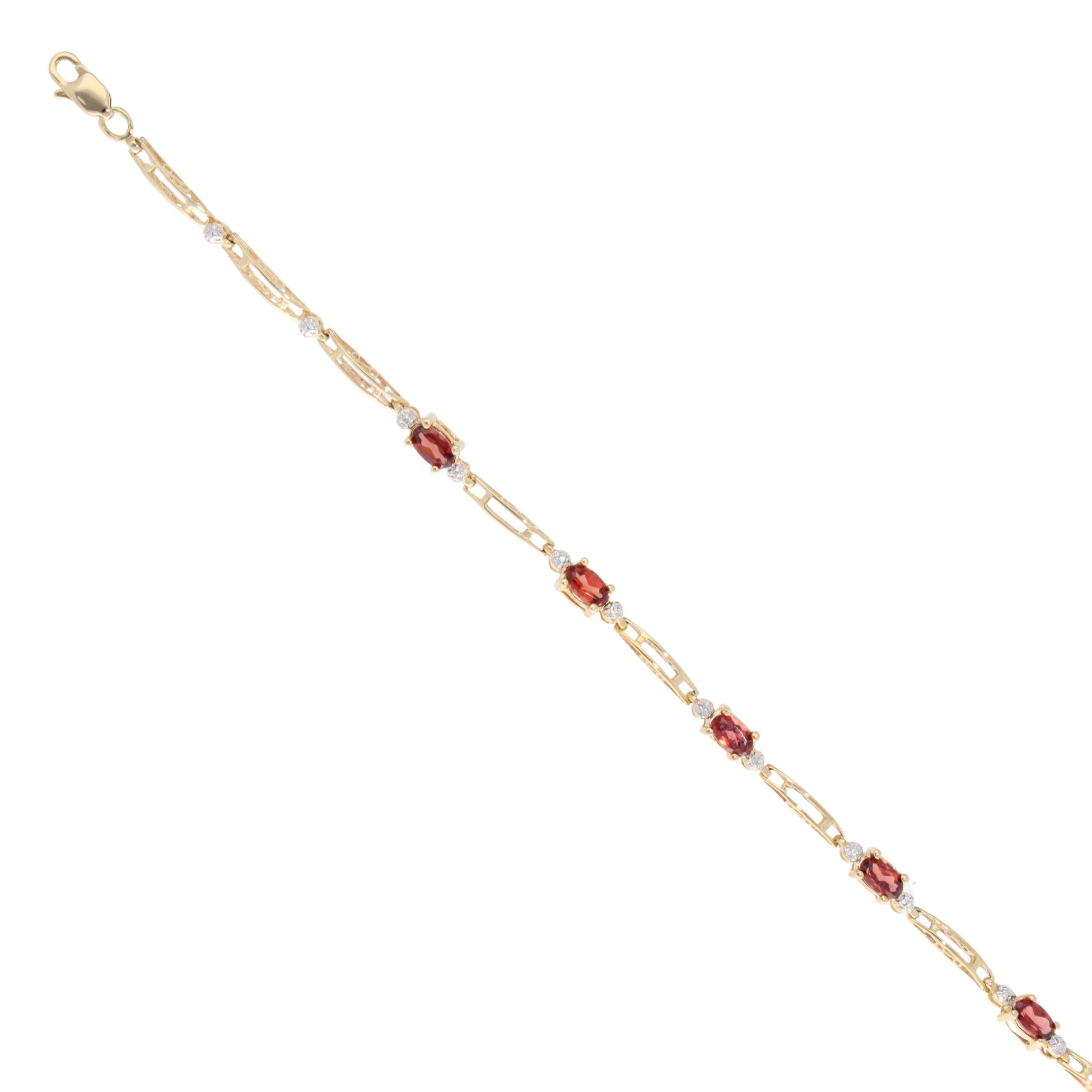 9ct Yellow Gold Garnet and Diamond Bracelet 7"