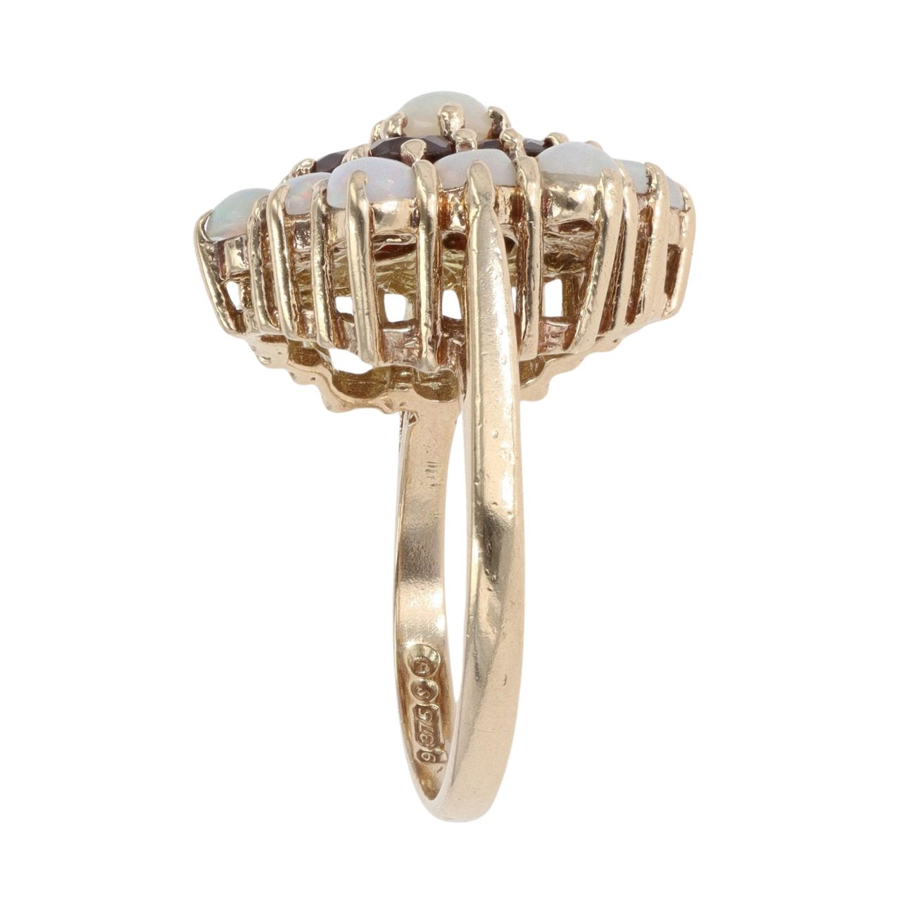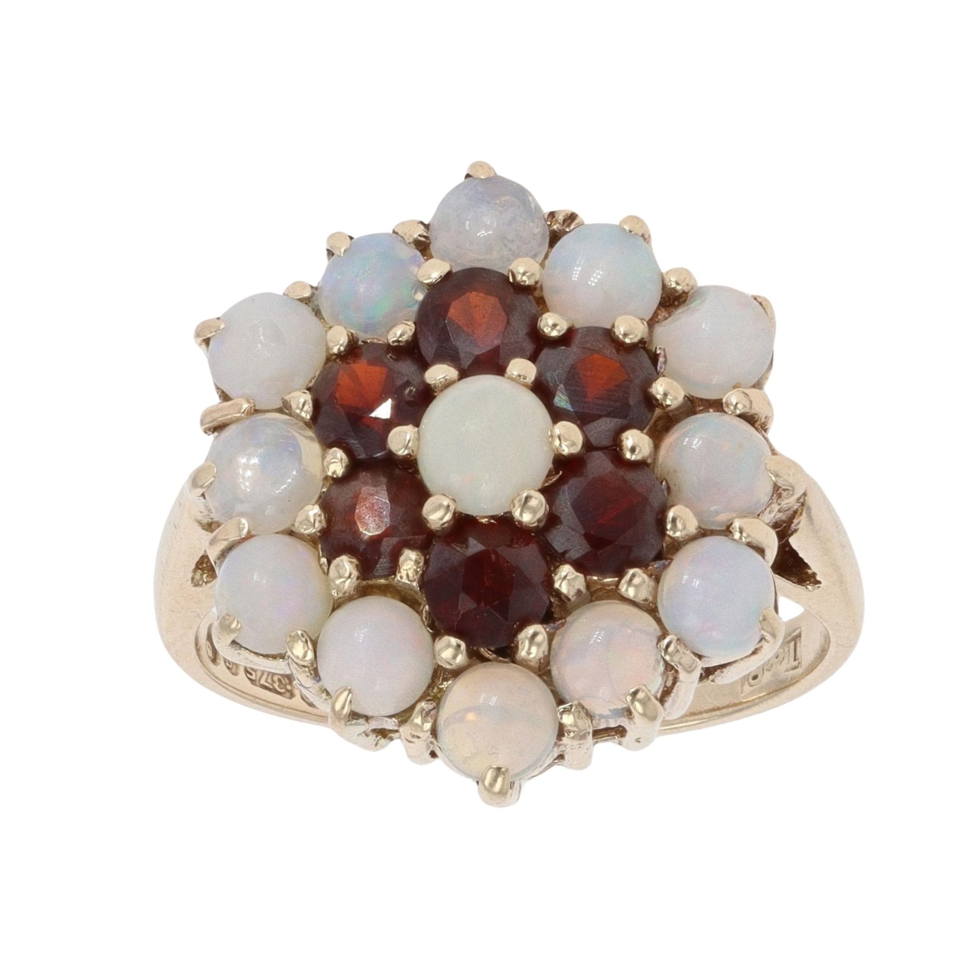 9ct Yellow Gold Garnet And Opal Cluster Ring