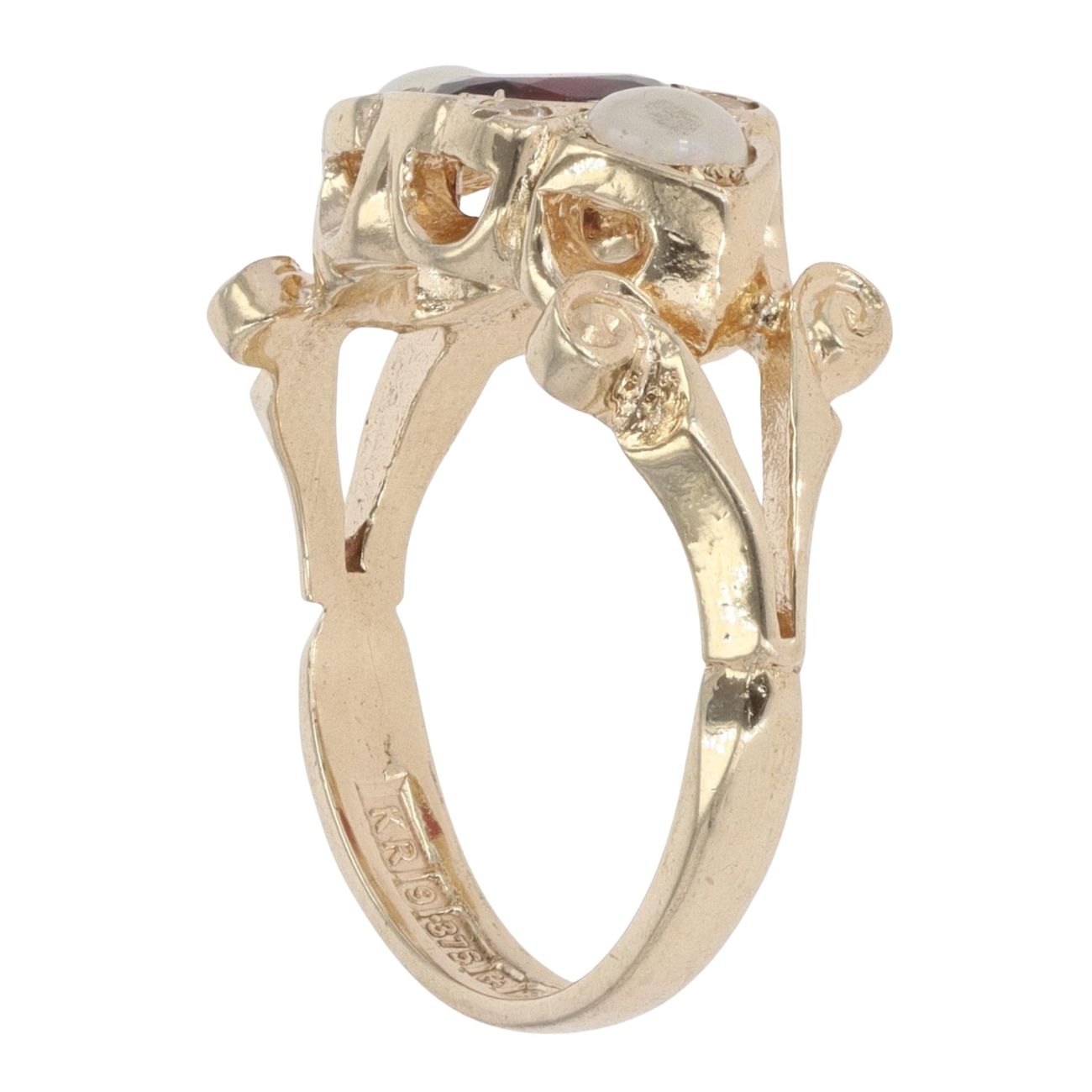 9ct Yellow Gold Garnet and Opal Three Stone Ring