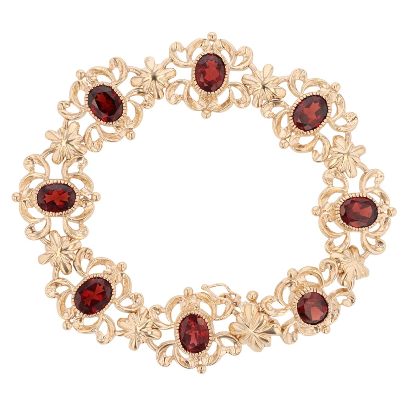9ct Yellow Gold Garnet Fancy Bracelet 7.5"