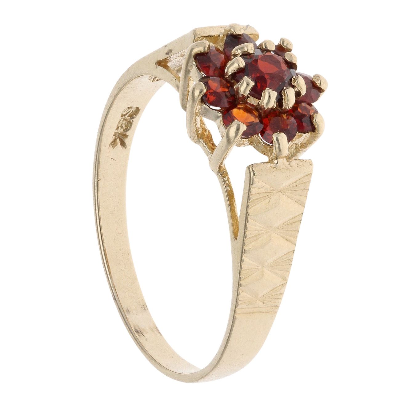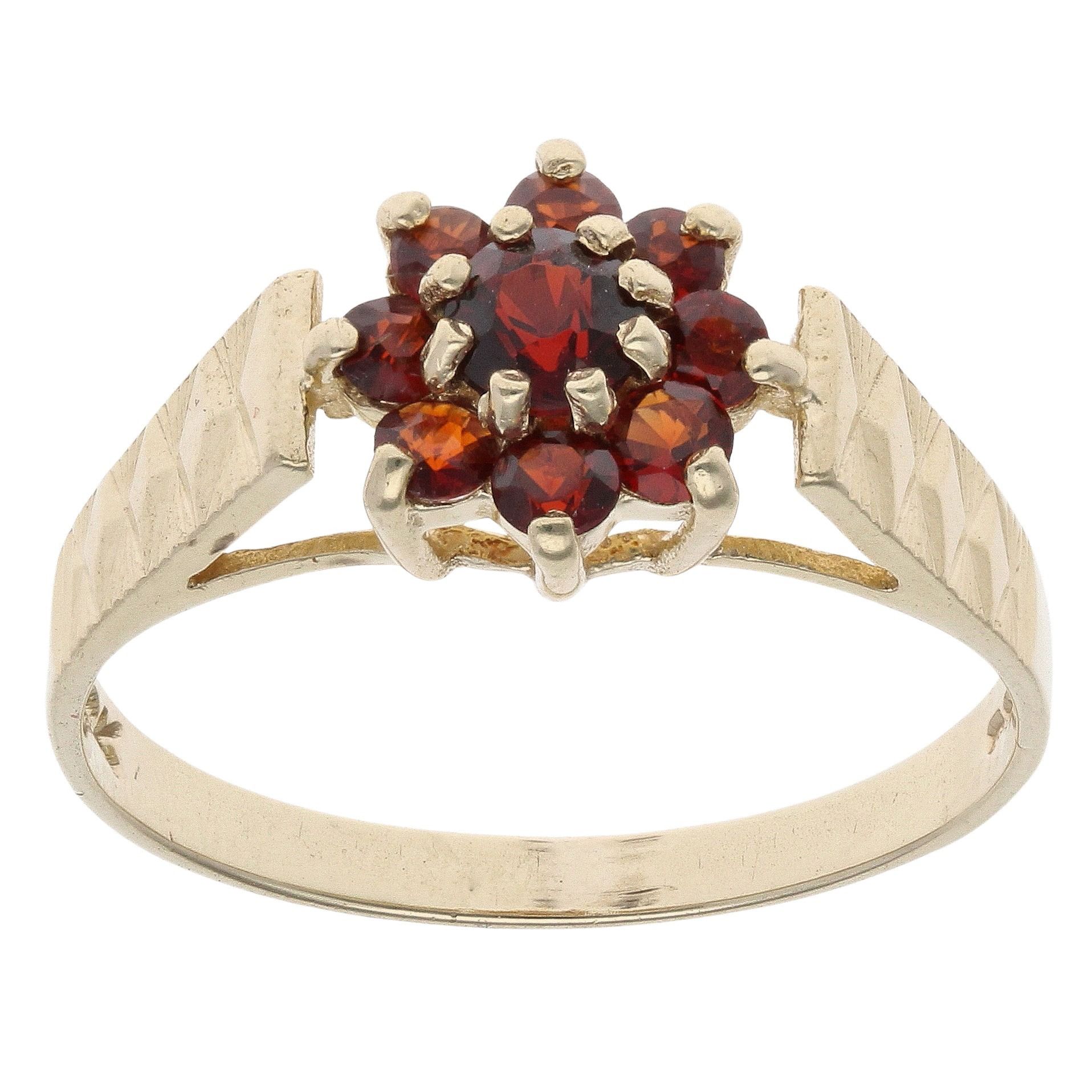 9ct Yellow Gold Garnet Floral Cluster Ring