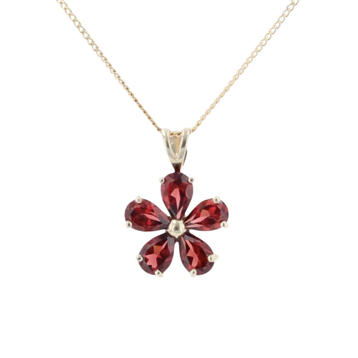9ct Yellow Gold Garnet Flower Pendant And Chain 16"