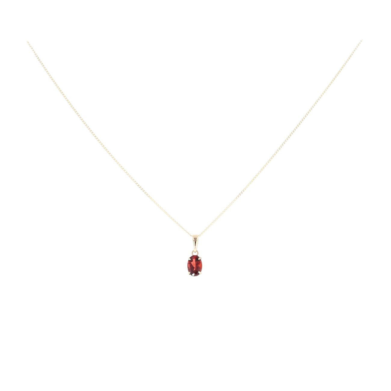 9ct Yellow Gold Garnet Pendant And Chain 18"