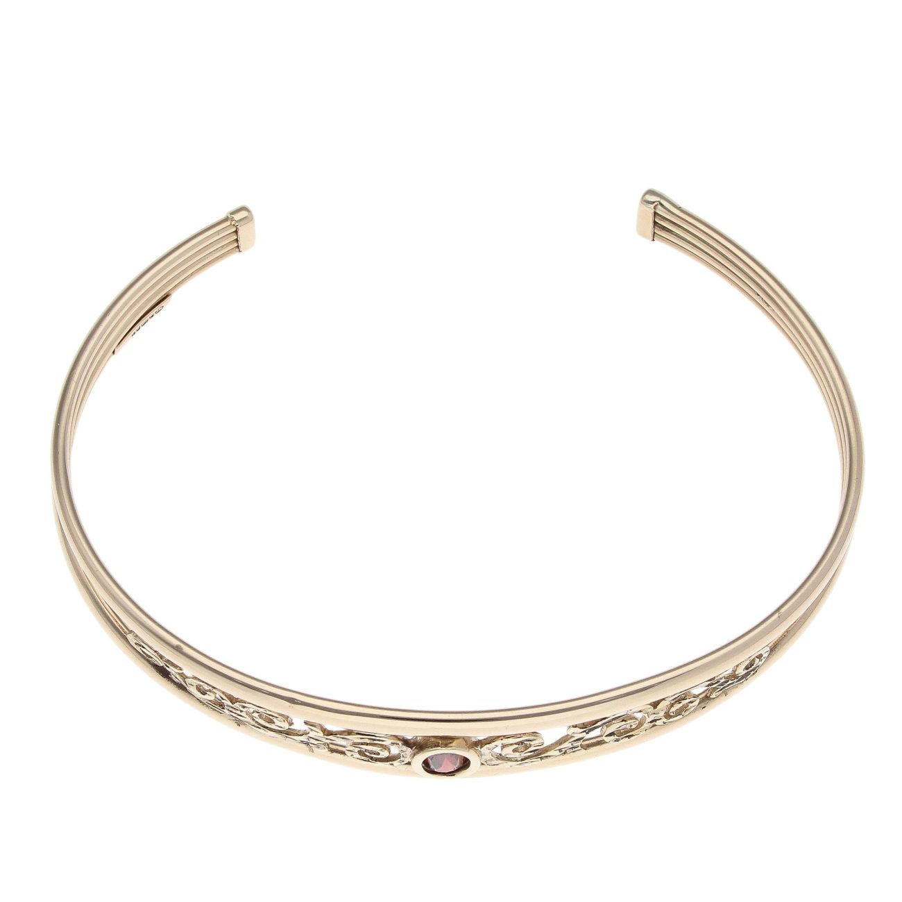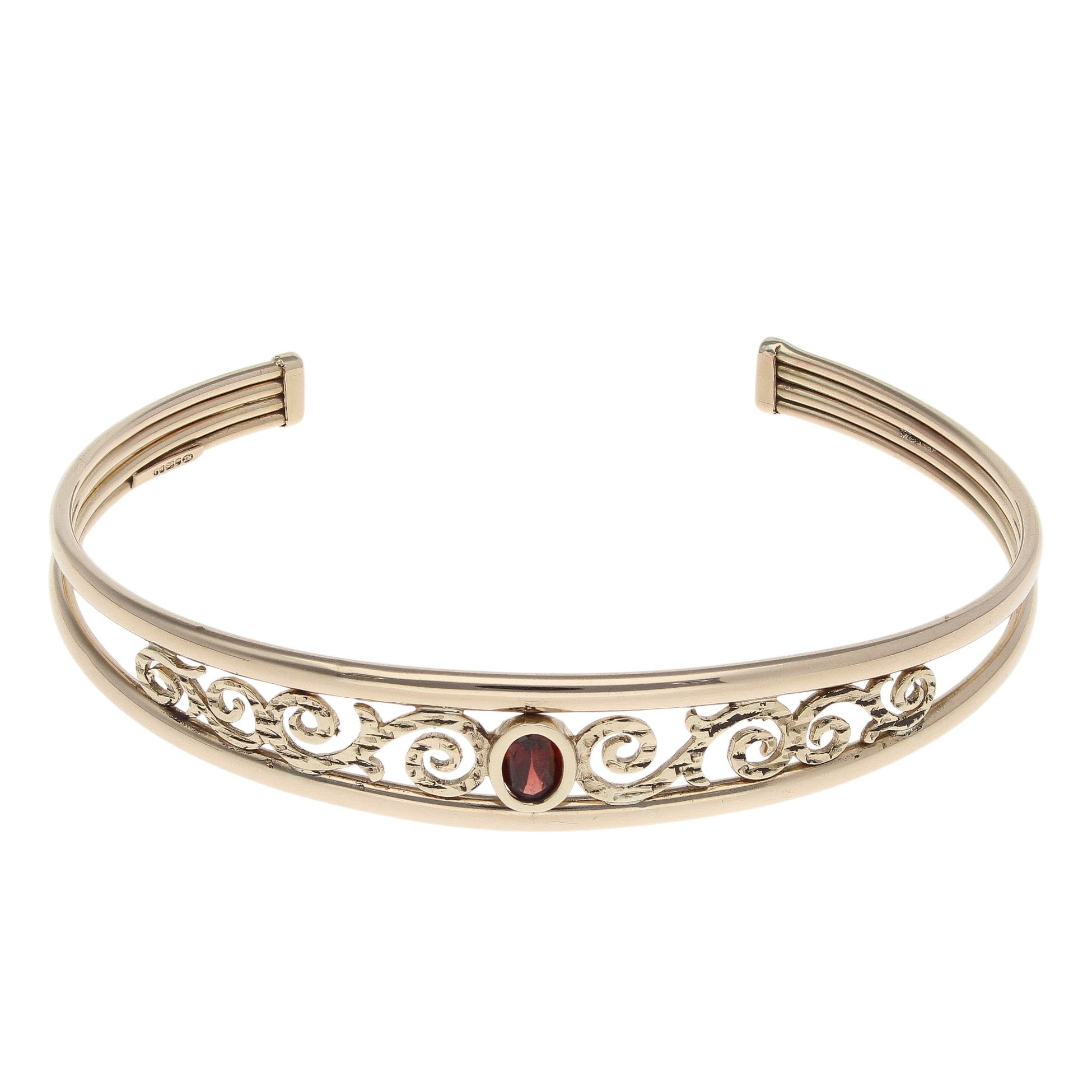 9ct Yellow Gold Garnet Swirls Torque Bangle