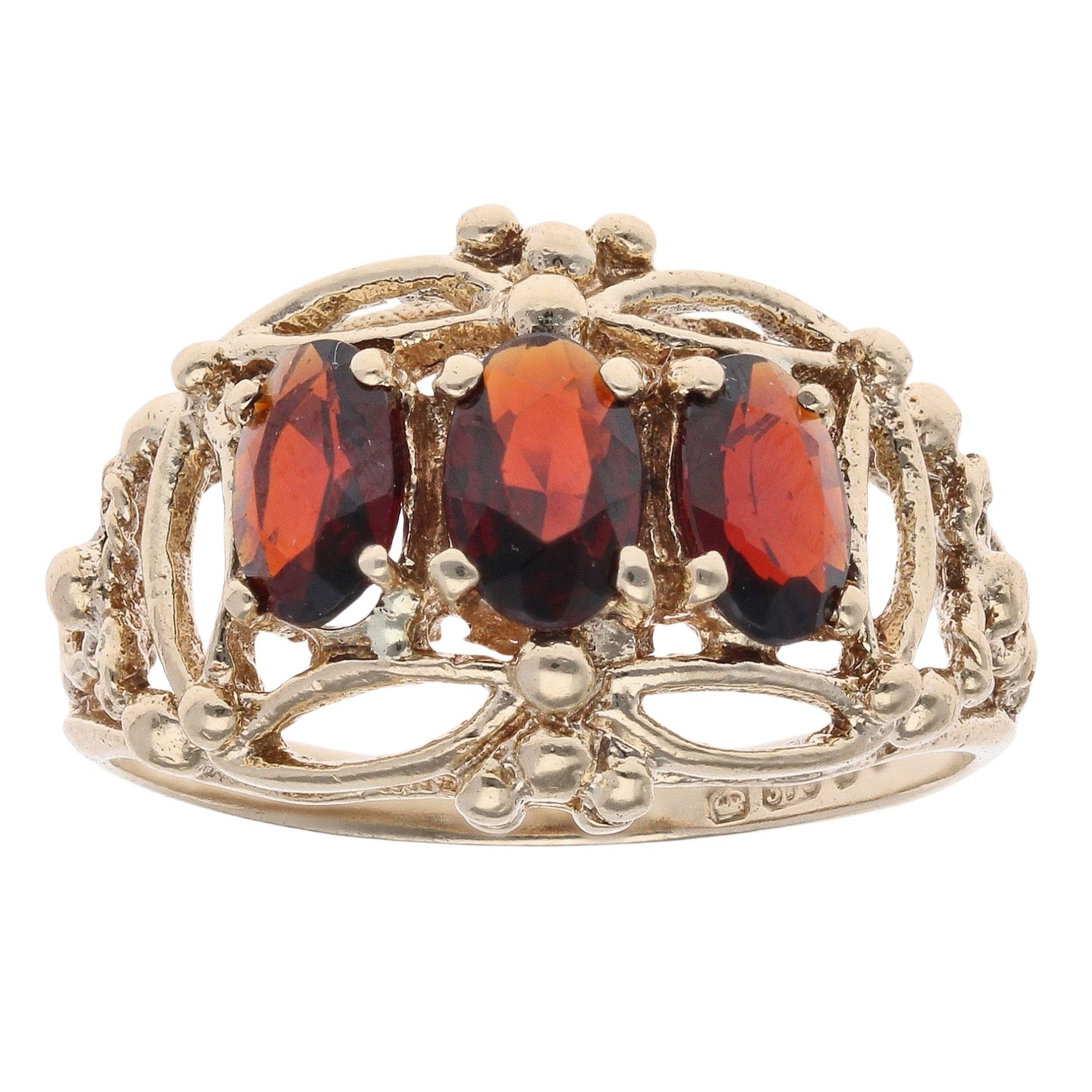 9ct Yellow Gold Garnet Three Stone Ring