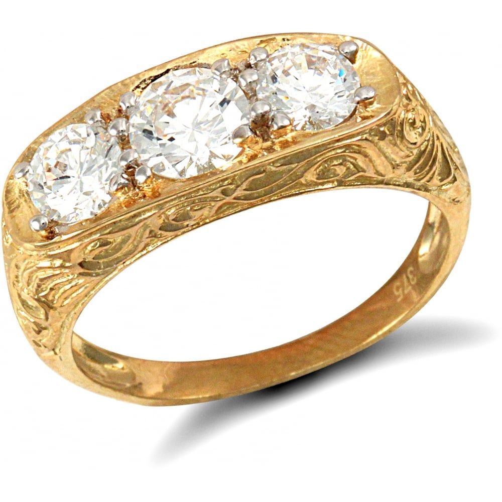 9ct Yellow Gold Gents Cubic Zirconia Ring