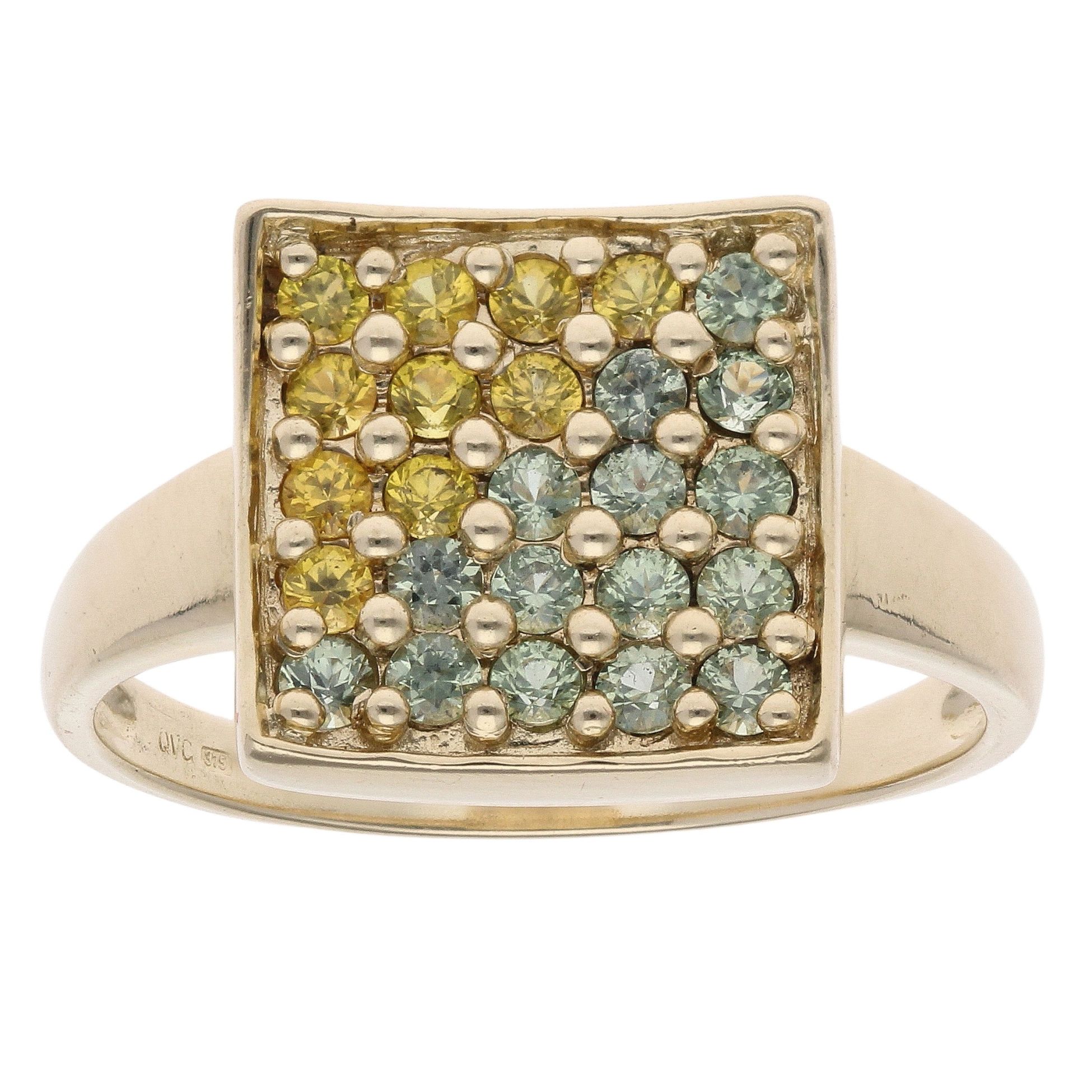 9ct Yellow Gold Green And Yellow Gemstone Cluster Ring