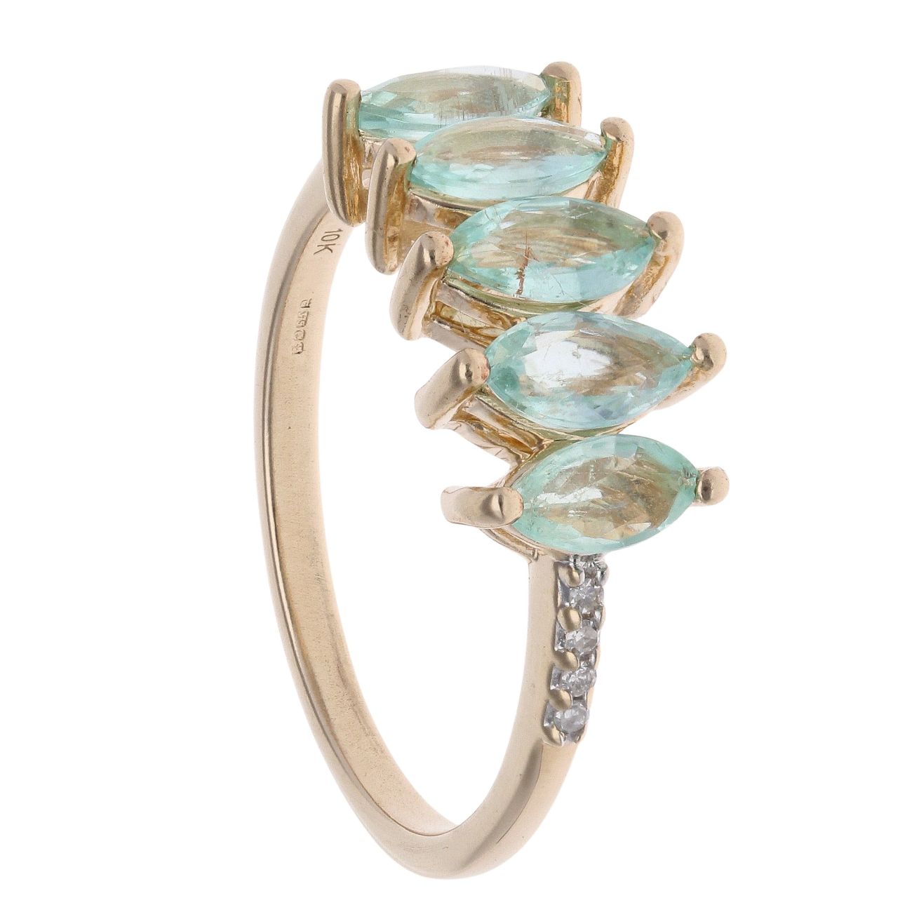 9ct Yellow Gold Green Gemstone and 0.05ct Diamond Five Stone Ring
