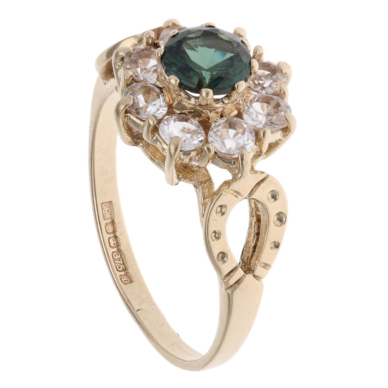 9ct Yellow Gold Green Gemstone and Cubic Zirconia Cluster Ring