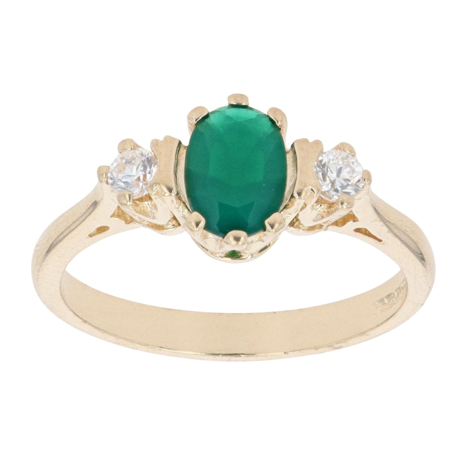 9ct Yellow Gold Green Gemstone And Cubic Zirconia Ring