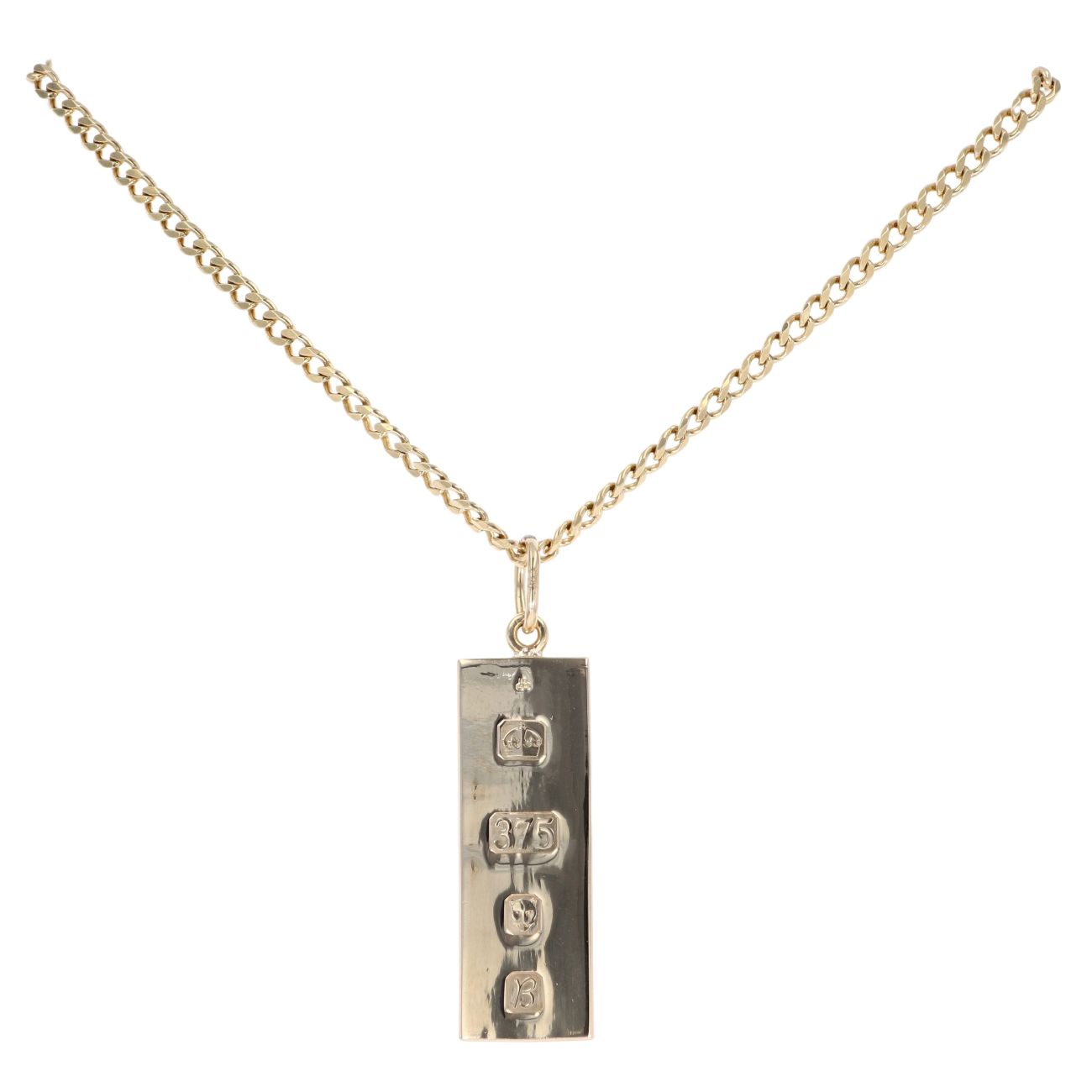 9ct Yellow Gold Hallmarked Ingot Pendant And Chain 22"