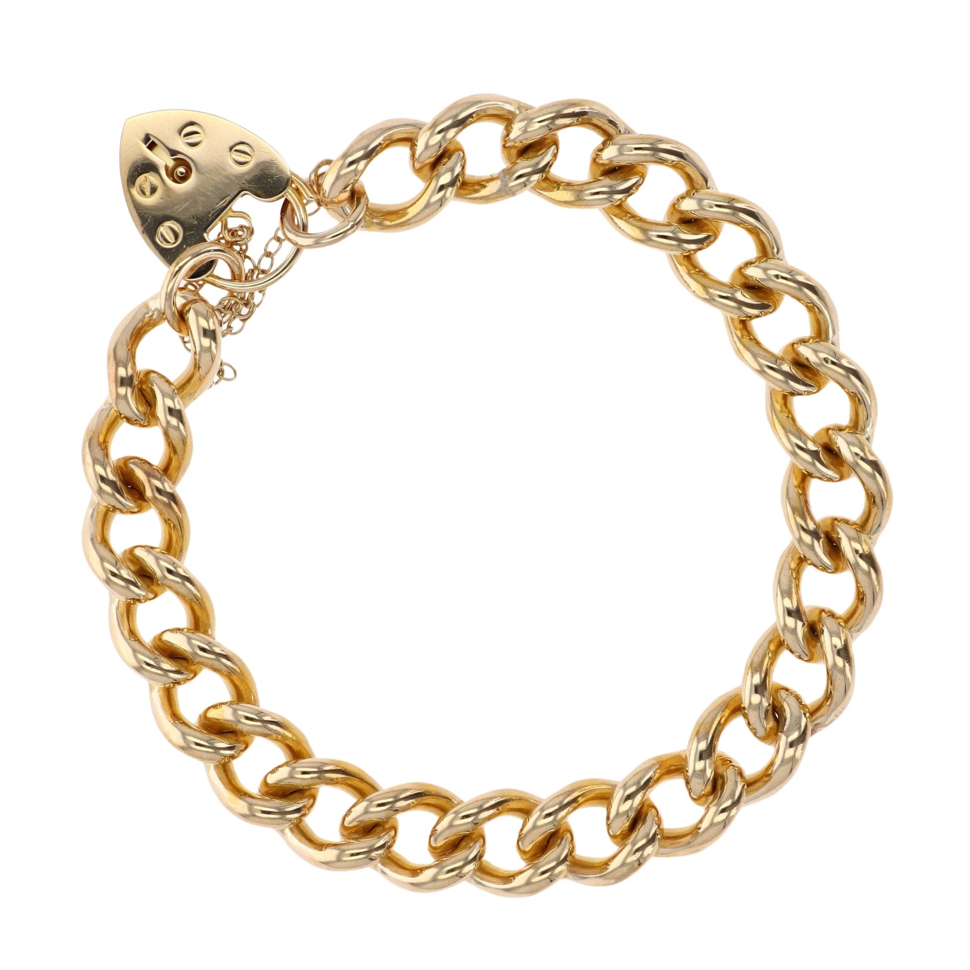 9ct Yellow Gold Heart Lock Charm Bracelet 7"