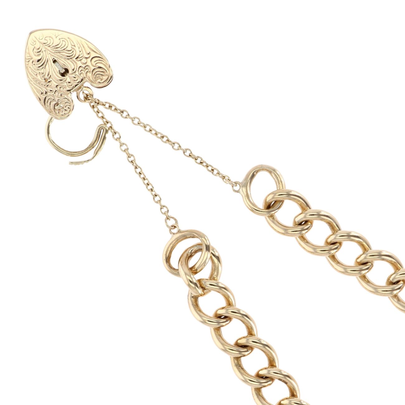9ct Yellow Gold Heart Lock Charm Bracelet 7"