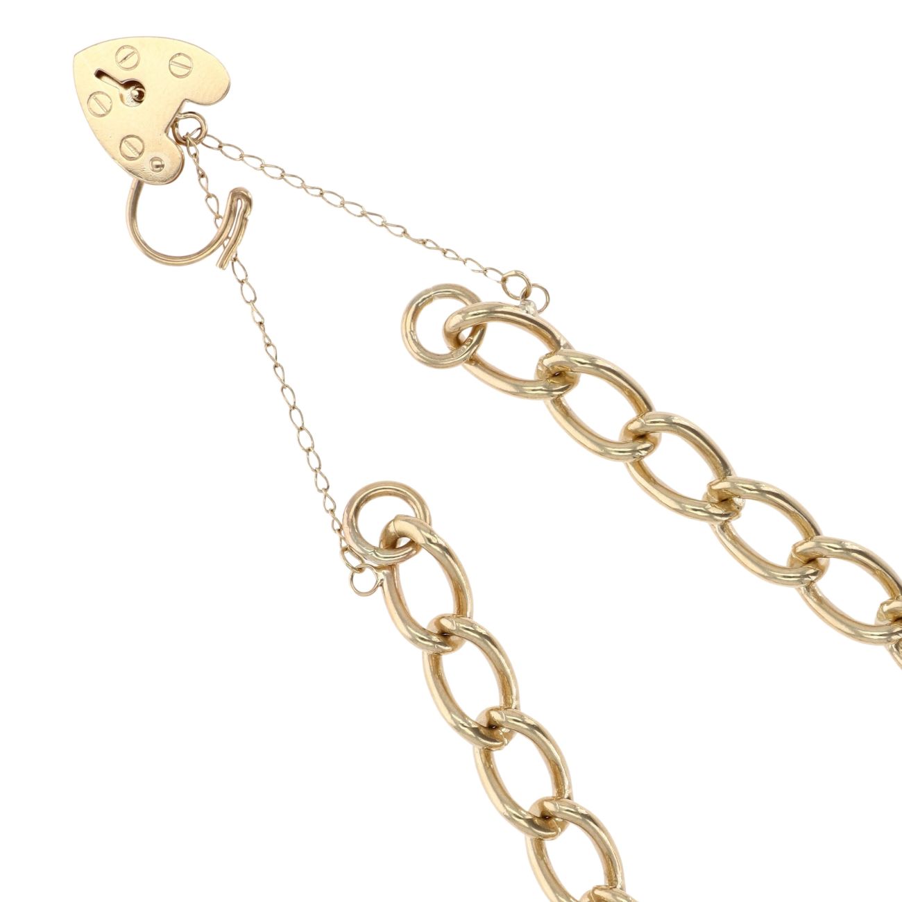 9ct Yellow Gold Heart Lock Charm Bracelet 7"