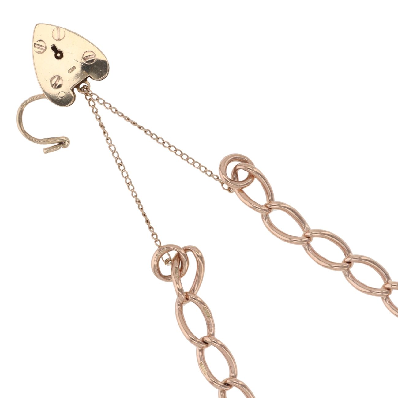9ct Yellow Gold Heart Lock Charm Bracelet 7"