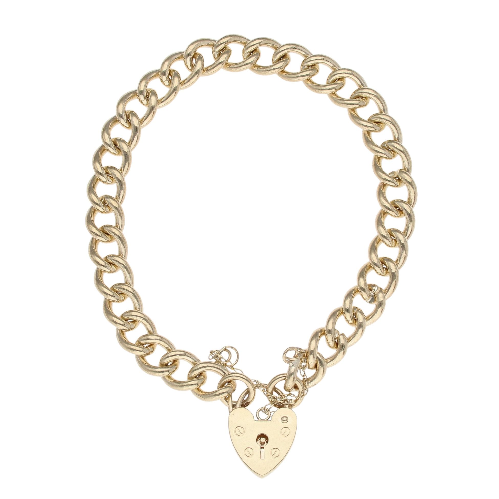 9ct Yellow Gold Heart Lock Charm Bracelet 7.5"